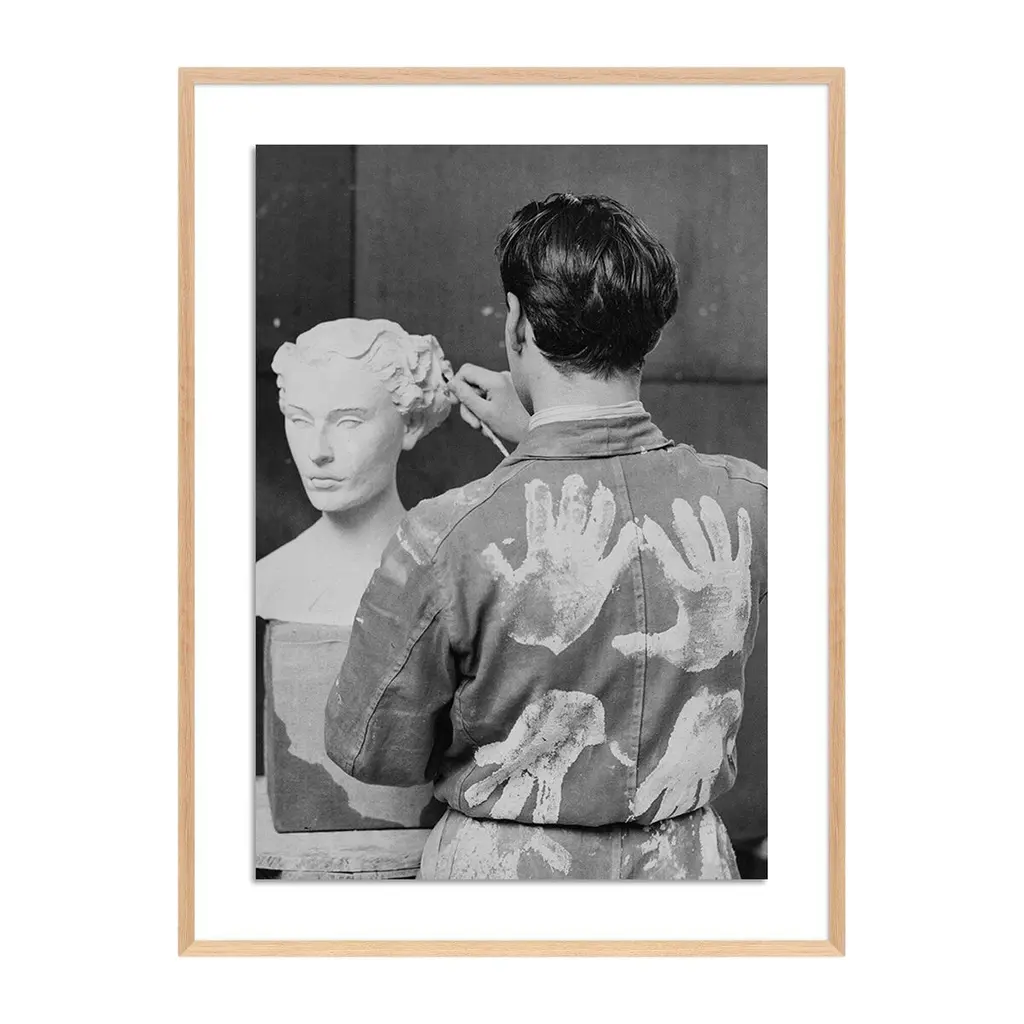 Pablo Picasso photographed with an assortment of his works. Handmade in Austin, Texas, each print includes a certificate of authenticity commemorating the exclusive partnership between Getty Images and Four Hands Art Studio.