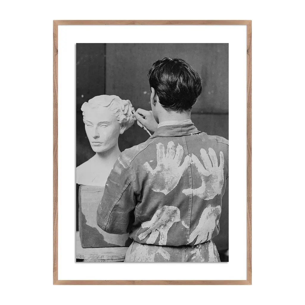 A sculptor in the studio. Handmade in Austin, Texas, each print includes a certificate of authenticity commemorating the exclusive partnership between Getty Images and Four Hands Art Studio.
