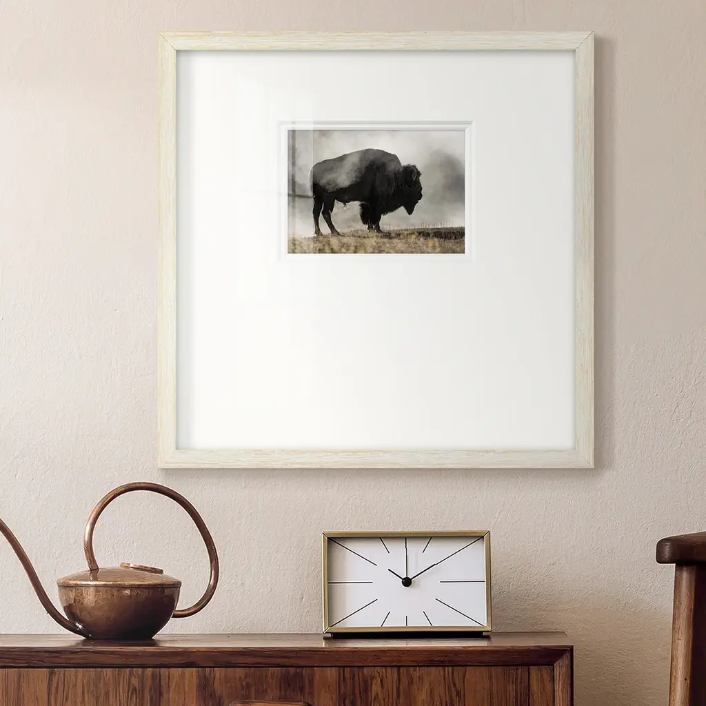 Geyser BasinPremium Framed Print A framed cold pressed paper print featuring superior double matting and quality frame. 2 SIZES AVAILABLE 16''X16''' - Overall Size 20''X20''' - Overall Size Each piece is made to order. Each piece comes with hanging hardware. Made in the USA Ready to Hang Giclee Paper Print Plexiglass Beveled Matt Board Double Matte Board