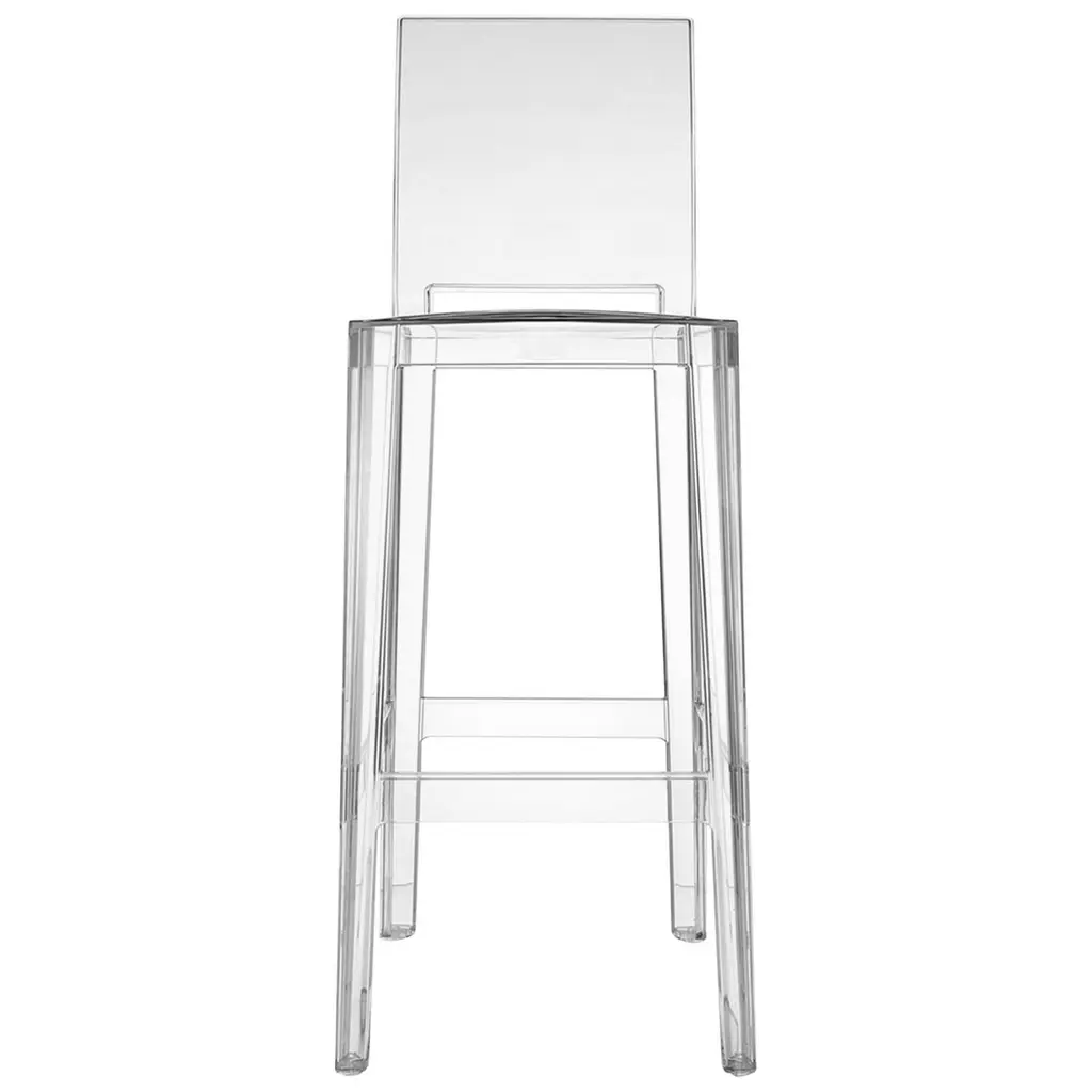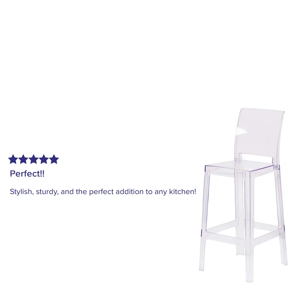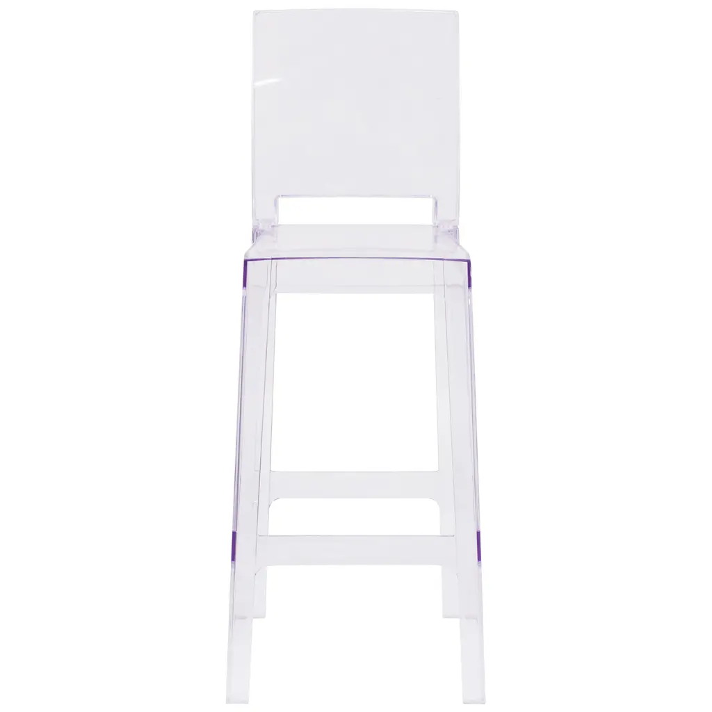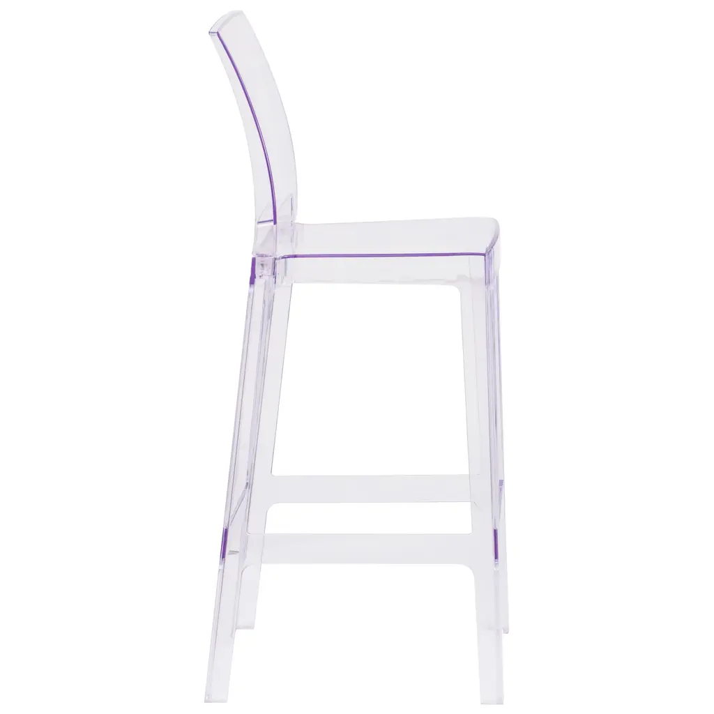 The transparent barstool brings modern design, elegance and function to your home, restaurant and special events.This modern stool with its near invisibility highlights your artwork and other furniture, lightens a crowded space and can make a small room appear larger. The contoured, polycarbonate molded seat provides comfort. Protective floor glides protect your floor by sliding smoothly when you need to move these beautiful chairs.This beautiful chair will become your premier choice for both indoor and outdoor events. Coordinate your ghost chairs with ghost barstools for an elegant and diverse appeal.