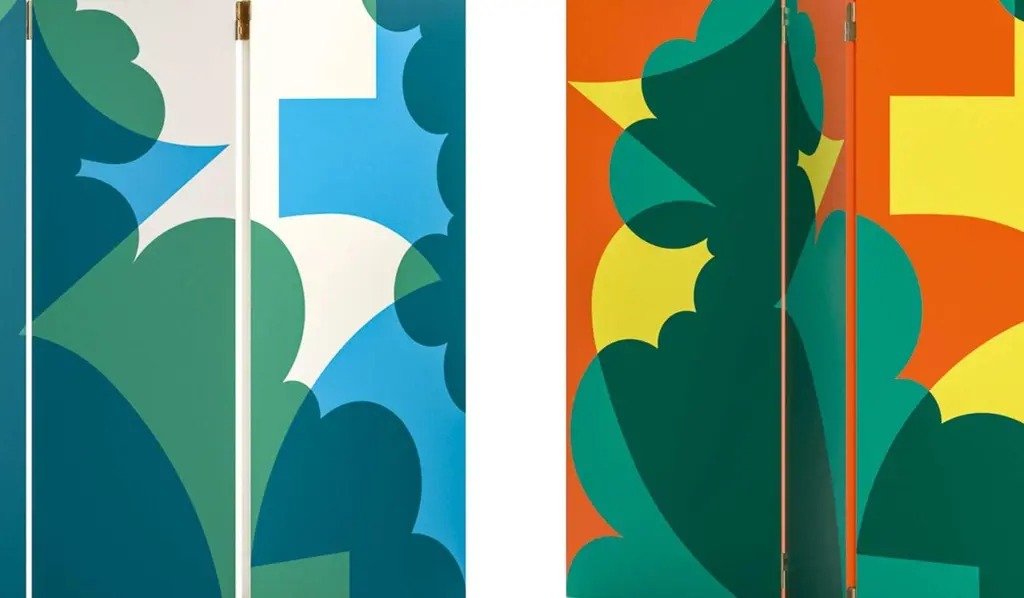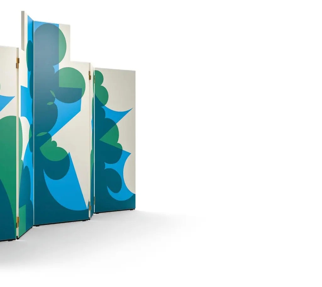 Giacomo Balla Paravento Balla Fondo Bianco, Motivo Verde E Blu For Cassina