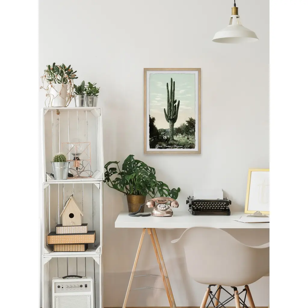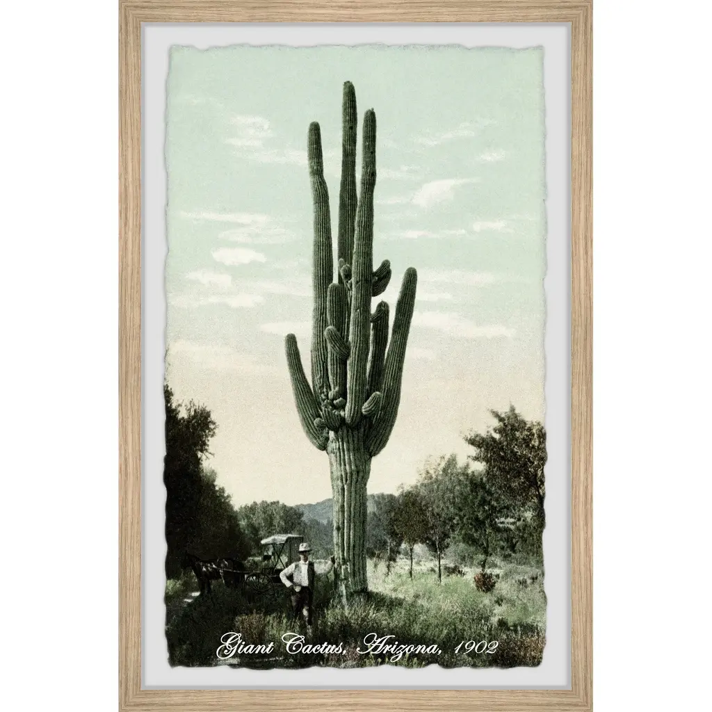 Pictured in Arizona in 1902, this print features a tall cacti standing alone in the scorching hot sun. This piece is printed on high quality archive paper and professionally hand-framed. With wall-mounting hooks included, this artful accent is ready to hang up as soon as it reaches your front door. • Top quality Giclee print on high resolution Archive Paper • Hand cut deckled edges • High quality durable non-warping frame • Finished under shatter resistant plexiglass • Arrives ready to hang • Includes a certificate of authenticity • Printed in the USA