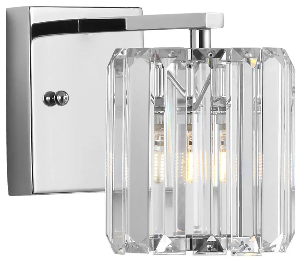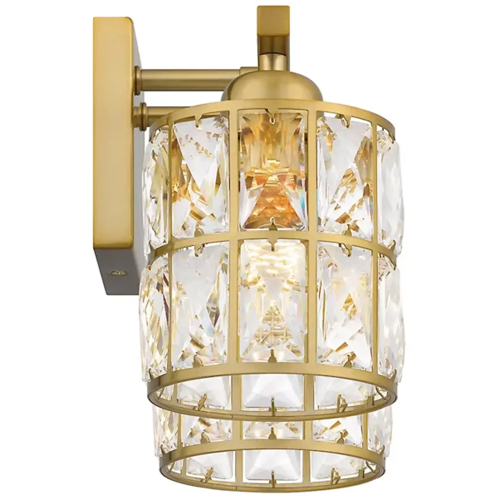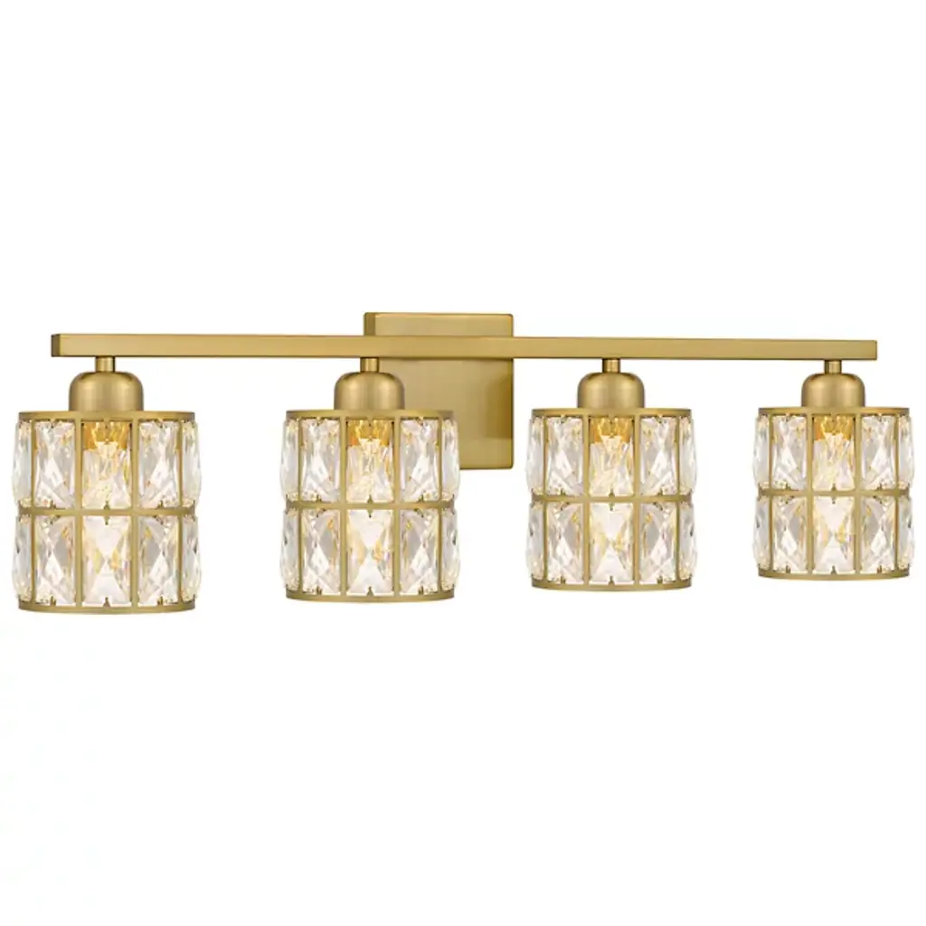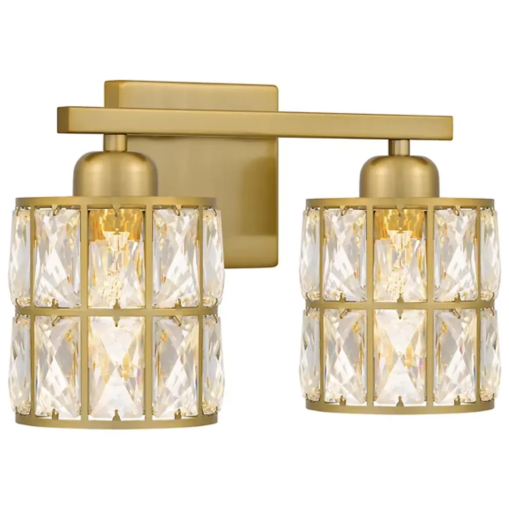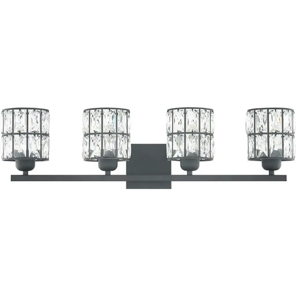 Brilliant, glamorous, refined. Energize your bathrooms with the dazzling crystal wrapped light sources of the Gibson Vanity Light from Quoizel. Mount it with shades facing up or down to complement the composition of your bathroom. Neat lamp holders and a sleek crossbar underline the piece’s modern sense. An intricate metal framework follows on top, covered in panels of crystals. These multi-faceted crystals captivate in their refracting properties with the faintest hint of ambient light. The crystals are set ablaze with rich highlights as incandescent bulbs beam through for a clean, diffused glow.