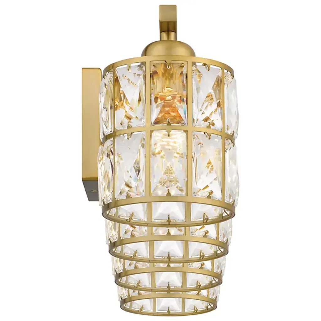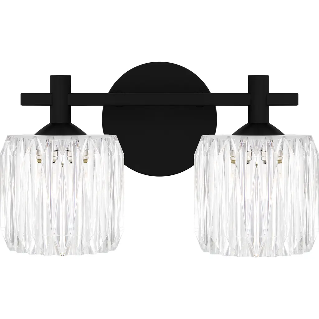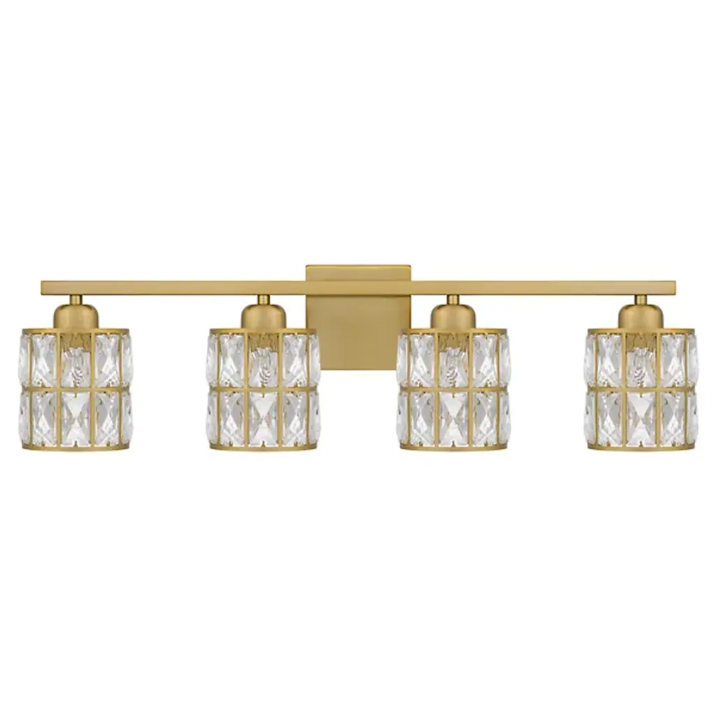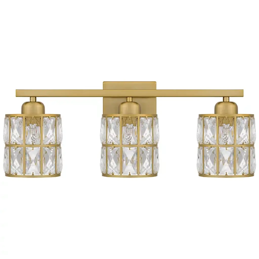 Brilliant, glamorous, refined. Energize your bathrooms with the dazzling crystal wrapped light sources of the Gibson Vanity Light from Quoizel. Mount it with shades facing up or down to complement the composition of your bathroom. Neat lamp holders and a sleek crossbar underline the piece’s modern sense. An intricate metal framework follows on top, covered in panels of crystals. These multi-faceted crystals captivate in their refracting properties with the faintest hint of ambient light. The crystals are set ablaze with rich highlights as incandescent bulbs beam through for a clean, diffused glow.