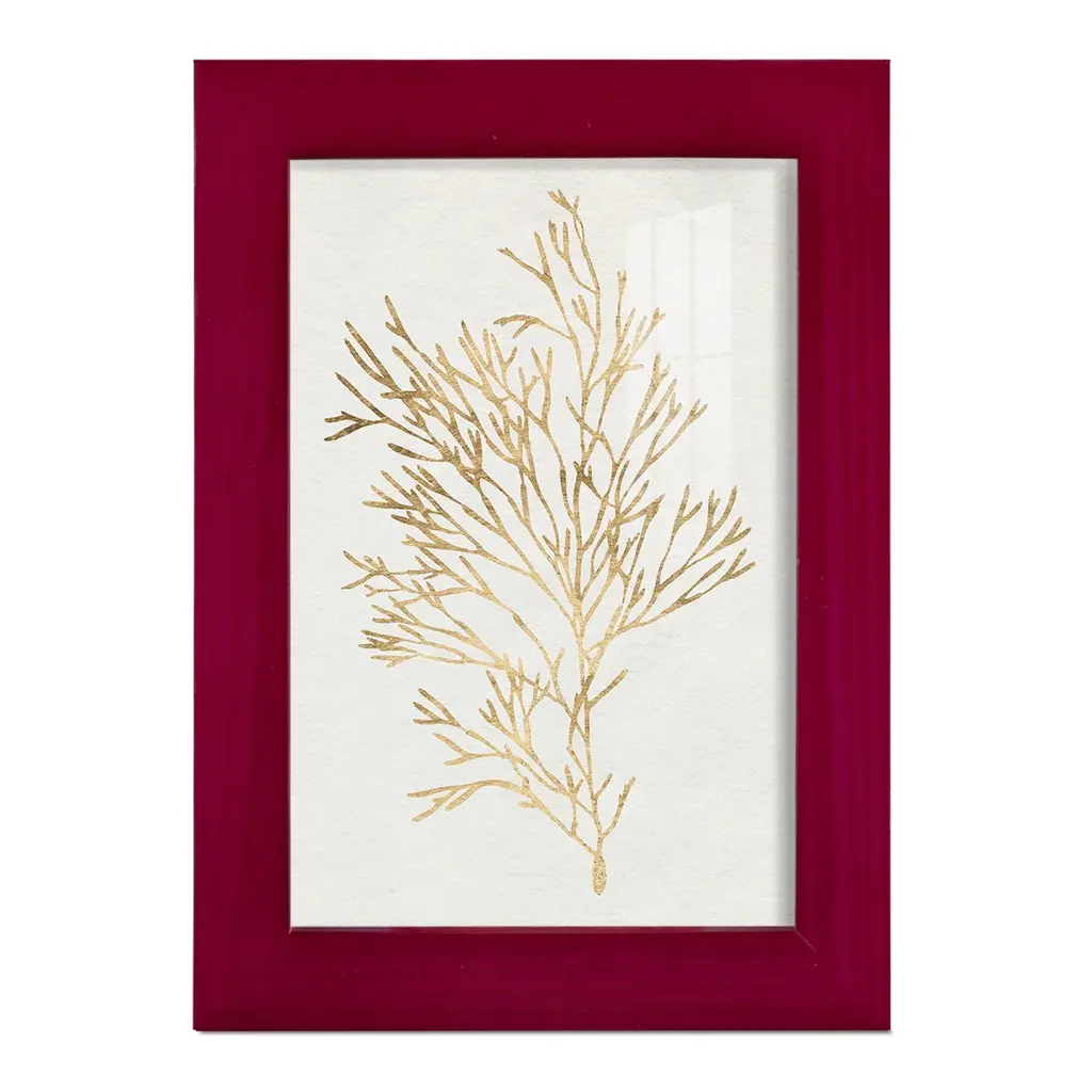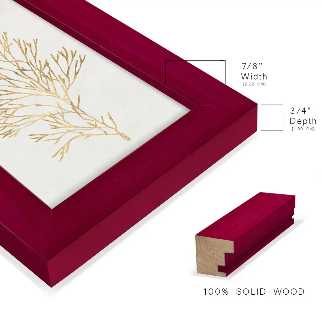Gilded Algae VII -EZ SWITCH Framed Print w/glass-Cherry Red A delightful, framed print. Featuring a solid wood frame with real wood glass. This premium print is giclee quality. In addition, every frame features a removable back and table top stand. This allows you to change your art in the future or to just stand the art on a table for a new look. We are sure you'll enjoy our new series of EZ SWITCH Framed Art. Solid Wood Frame Real Glass Removable / Replaceable Art Built in Tabletop Stand Sizes range from 4x6 up to 12x15 - buy just one or pair them up as sets as you see fit.