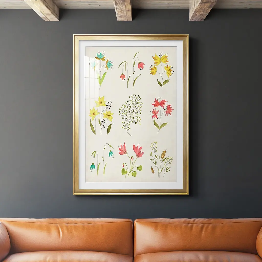 Designed by us and available only at One Kings Lane: A simple botanical print, reproduced here on matte paper, is embellished with hand-applied gold leaf and displayed under glass. This piece arrives framed and ready to hang.