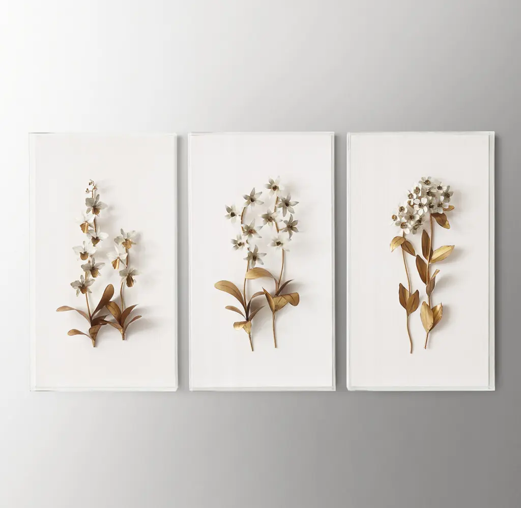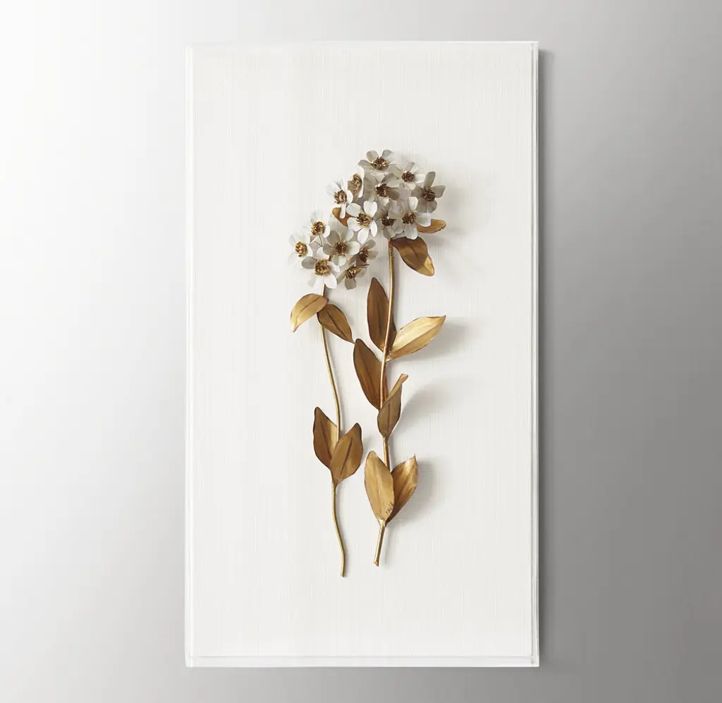 Delicate blooms come to life in the seemingly contradictory medium of metal. Artist Tommy Mitchell coaxes tactile, organic forms from solid metals, gilded to create gleaming, scaled-up floral sculptures.
