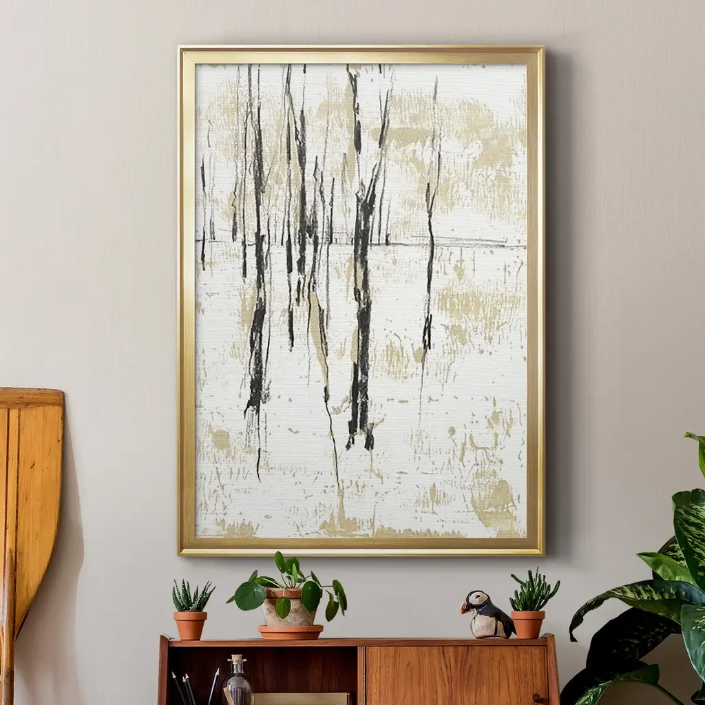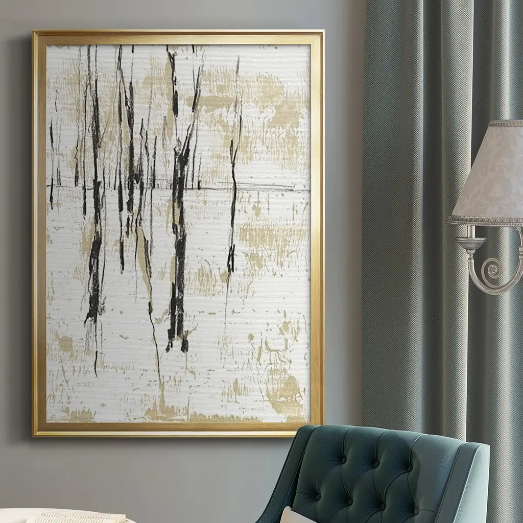 Gilded Forest I Premium Framed Print - Ready to Hang A Premium Framed Print created to last. Framed in distressed wood and available in an array of sizes and colors Featuring a beveled a solid wood stretcher bar, each piece comes ready to hand 4 SIZES AVAILABLE 30.5''X42.5'' - Overall Size 26.5'X36.5'' - Overall Size 22.5''x30.5'' - Overall Size 18.5''x24.5'' - Overall Size Each piece is made to order. Each piece comes with hanging hardware. Made in the USA Ready to Hang