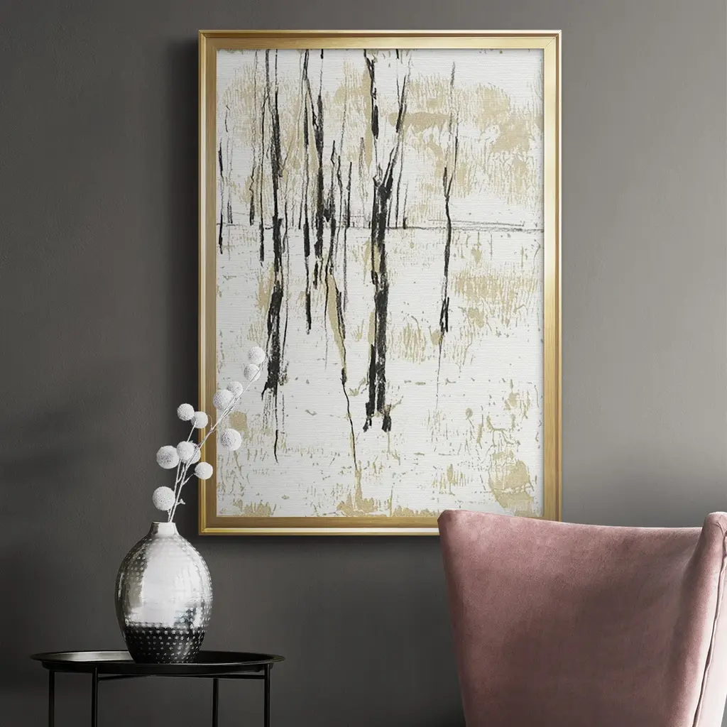 Gilded Forest I Premium Framed Print - Ready to Hang A Premium Framed Print created to last. Framed in distressed wood and available in an array of sizes and colors Featuring a beveled a solid wood stretcher bar, each piece comes ready to hand 4 SIZES AVAILABLE 30.5''X42.5'' - Overall Size 26.5'X36.5'' - Overall Size 22.5''x30.5'' - Overall Size 18.5''x24.5'' - Overall Size Each piece is made to order. Each piece comes with hanging hardware. Made in the USA Ready to Hang