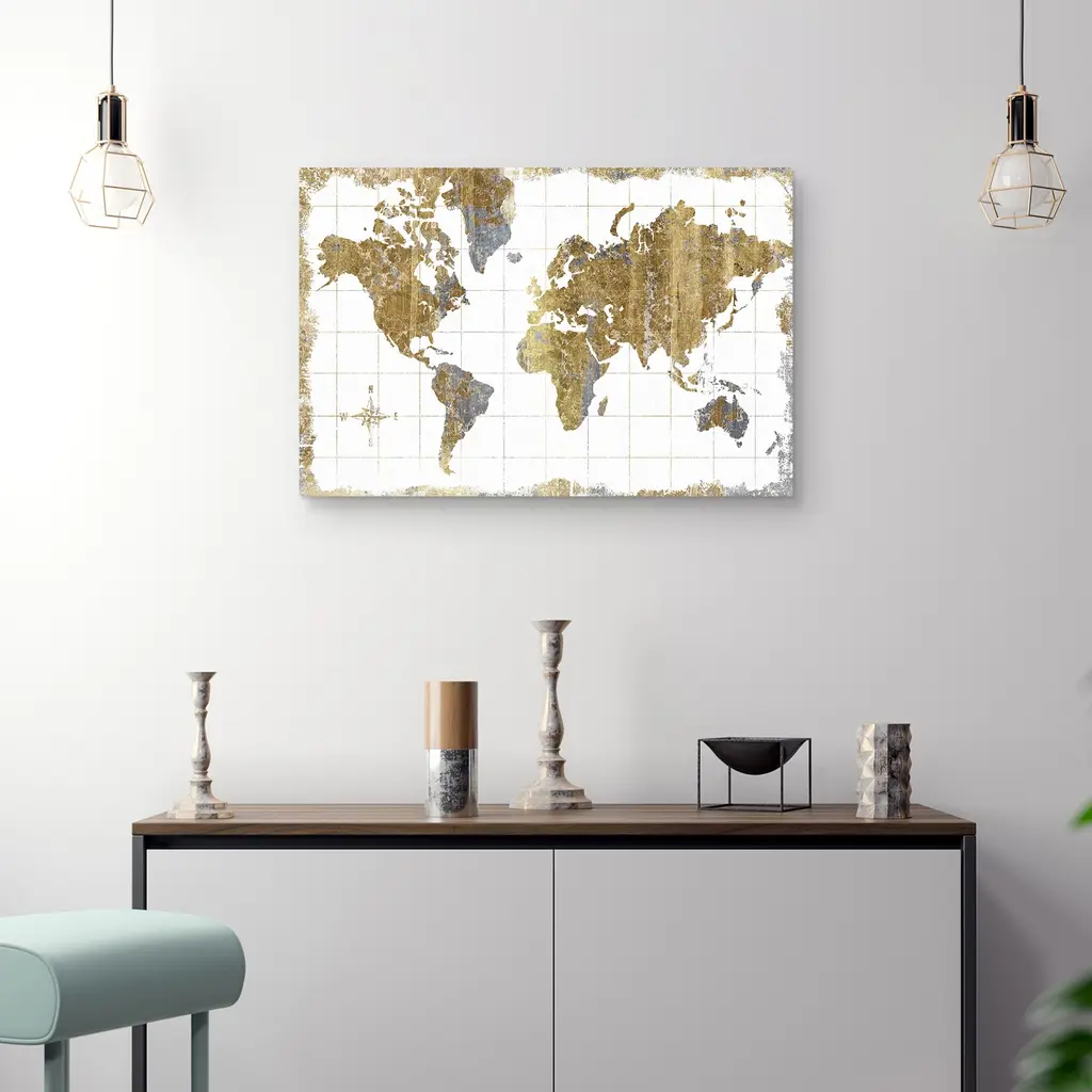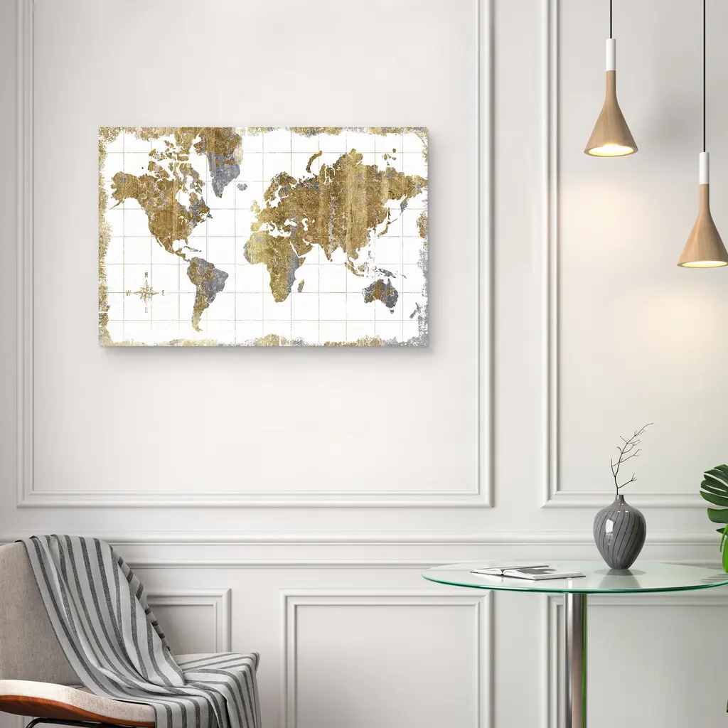 Gilded Map by Wild Apple Portfolio Canvas Art Print is produced with printing that covers the entirety of the canvas for a sleek and stylish museum-quality look. Our framed prints are made by expert craftsmen who strive to make each canvas the masterpiece