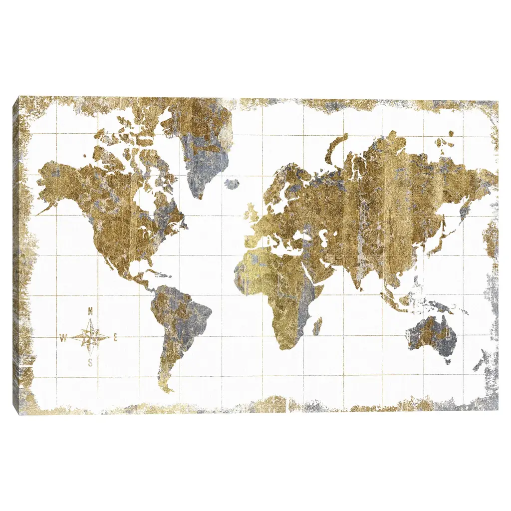 Gilded Map By Wild Apple Portfolio Canvas Art Print - 24x36