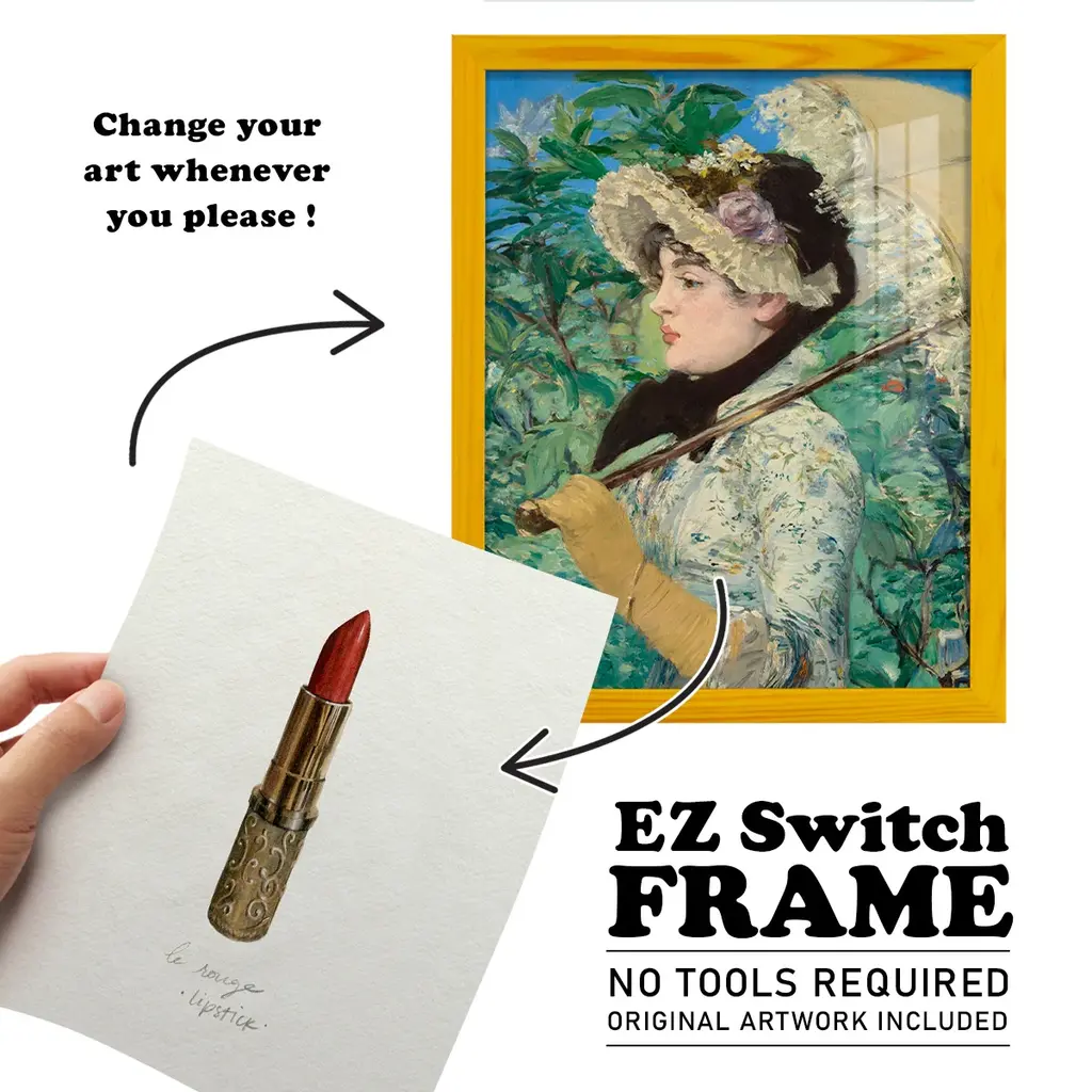 Gilded Toiletries III -EZ SWITCH Framed Print w/glass-Cherry Red A delightful, framed print. Featuring a solid wood frame with real wood glass. This premium print is giclee quality. In addition, every frame features a removable back and table top stand. This allows you to change your art in the future or to just stand the art on a table for a new look. We are sure you'll enjoy our new series of EZ SWITCH Framed Art. Solid Wood Frame Real Glass Removable / Replaceable Art Built in Tabletop Stand Sizes range from 4x6 up to 12x15 - buy just one or pair them up as sets as you see fit.