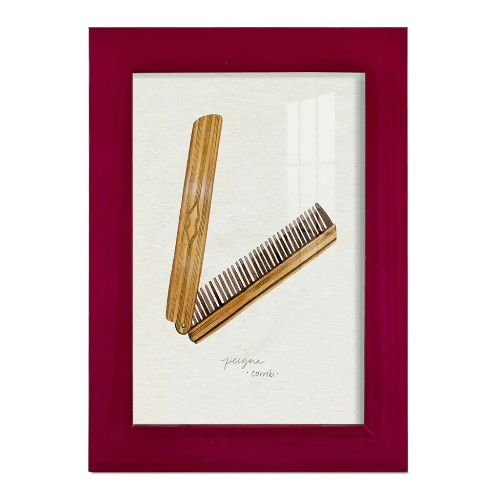 Gilded Toiletries IV -EZ SWITCH Framed Print w/glass-Cherry Red A delightful, framed print. Featuring a solid wood frame with real wood glass. This premium print is giclee quality. In addition, every frame features a removable back and table top stand. This allows you to change your art in the future or to just stand the art on a table for a new look. We are sure you'll enjoy our new series of EZ SWITCH Framed Art. Solid Wood Frame Real Glass Removable / Replaceable Art Built in Tabletop Stand Sizes range from 4x6 up to 12x15 - buy just one or pair them up as sets as you see fit.