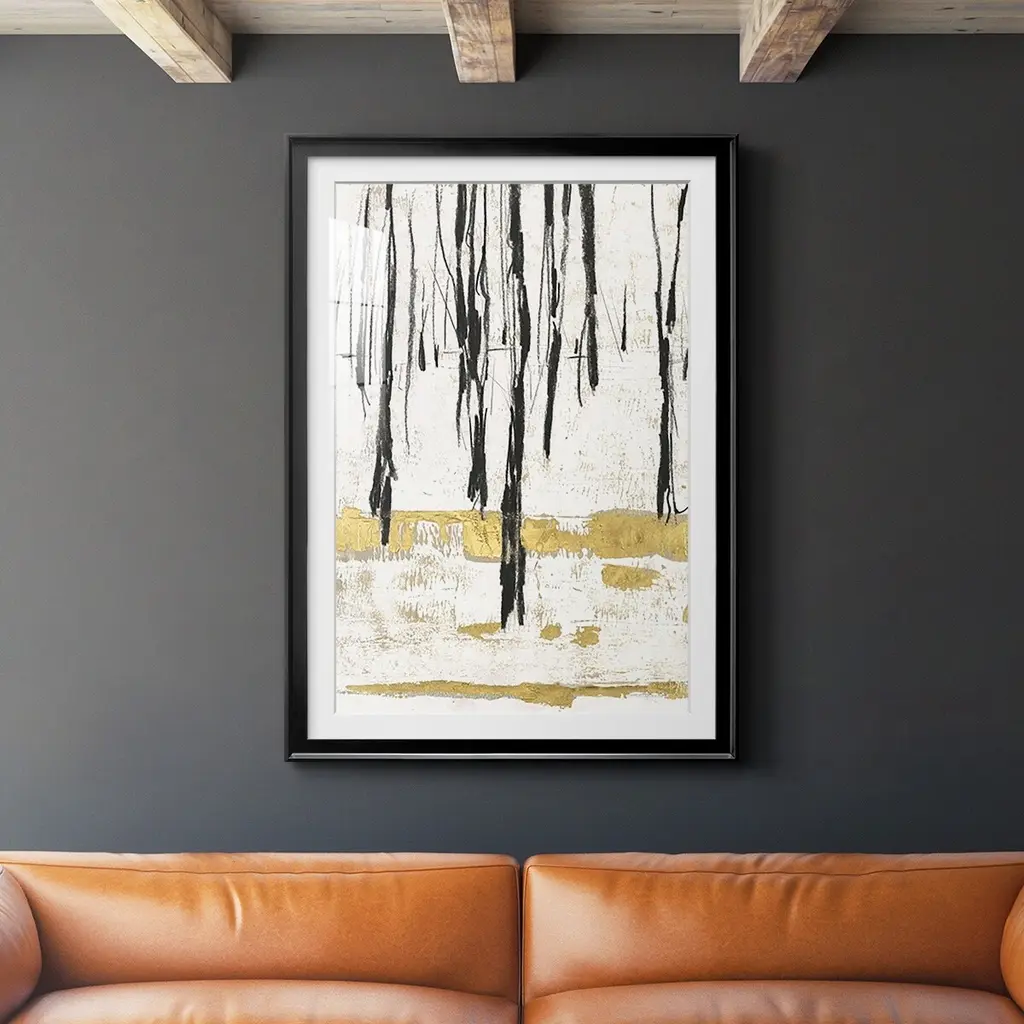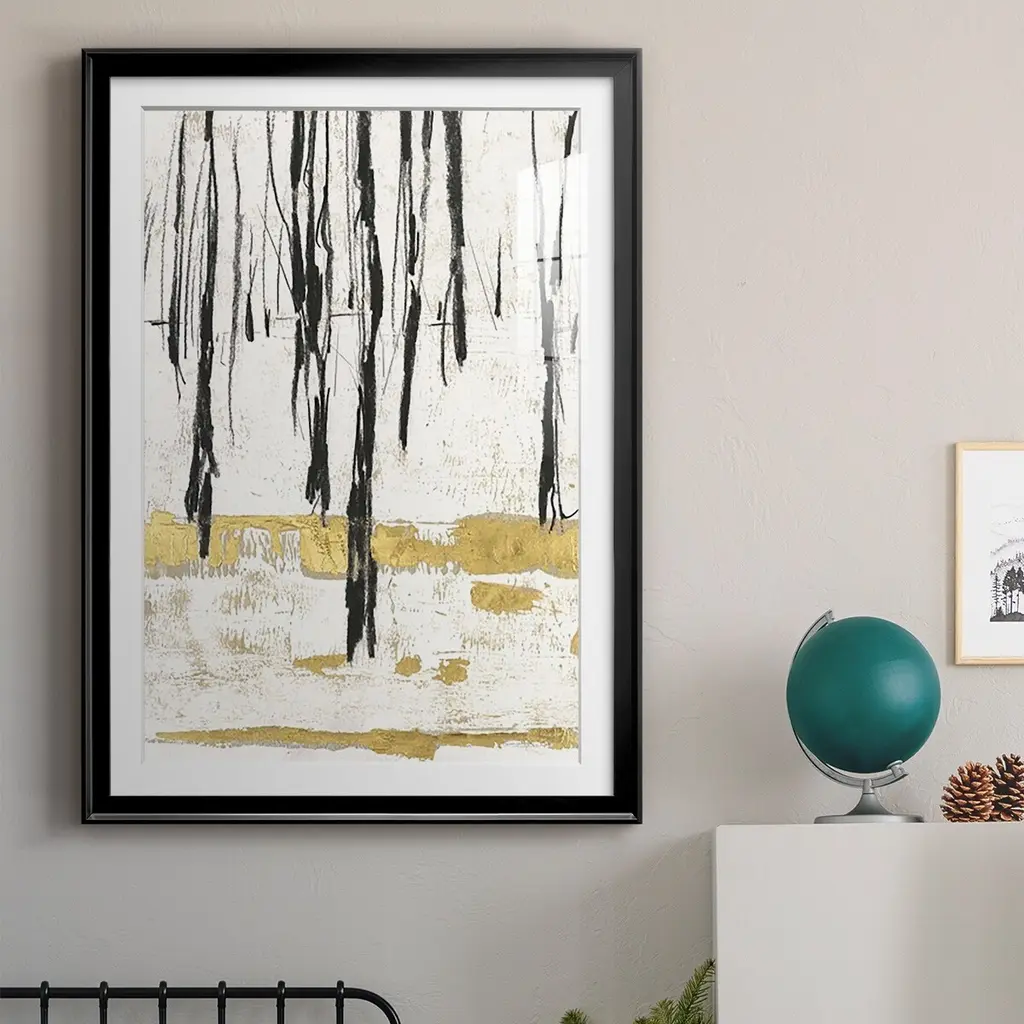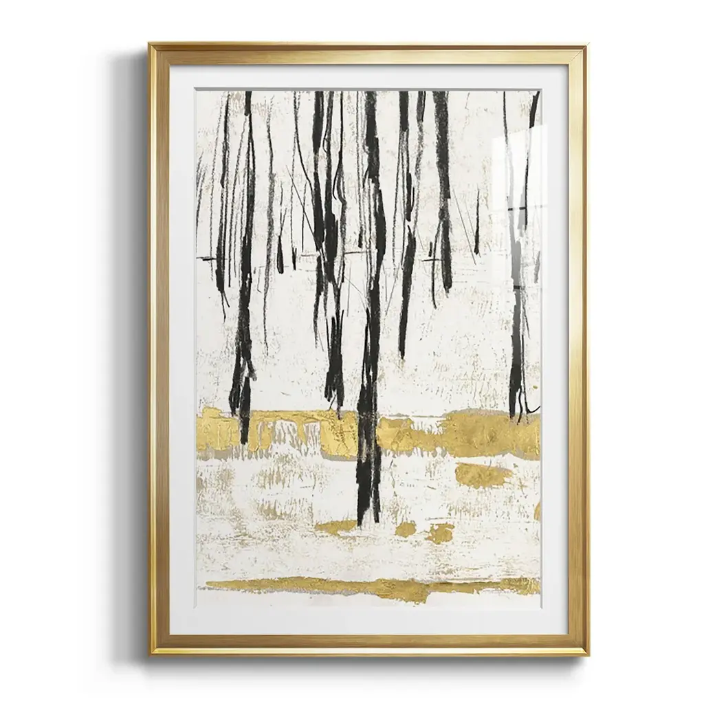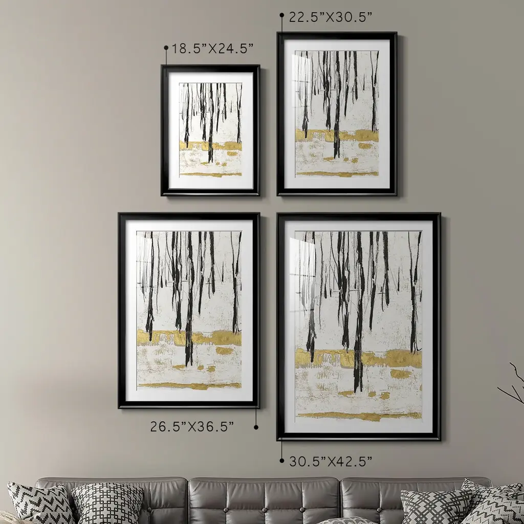 Gilded Winter II Premium Framed Print - Ready to Hang A Premium Framed Print created to last. Framed in distressed wood and available in an array of sizes and colors Featuring a beveled a solid wood stretcher bar, each piece comes ready to hand 4 SIZES AVAILABLE 30.5''X42.5'' - Overall Size 26.5'X36.5'' - Overall Size 22.5''x30.5'' - Overall Size 18.5''x24.5'' - Overall Size Each piece is made to order. Each piece comes with hanging hardware. Made in the USA Ready to Hang Giclee Paper Print Acrylic Glass Beveled Matt Board