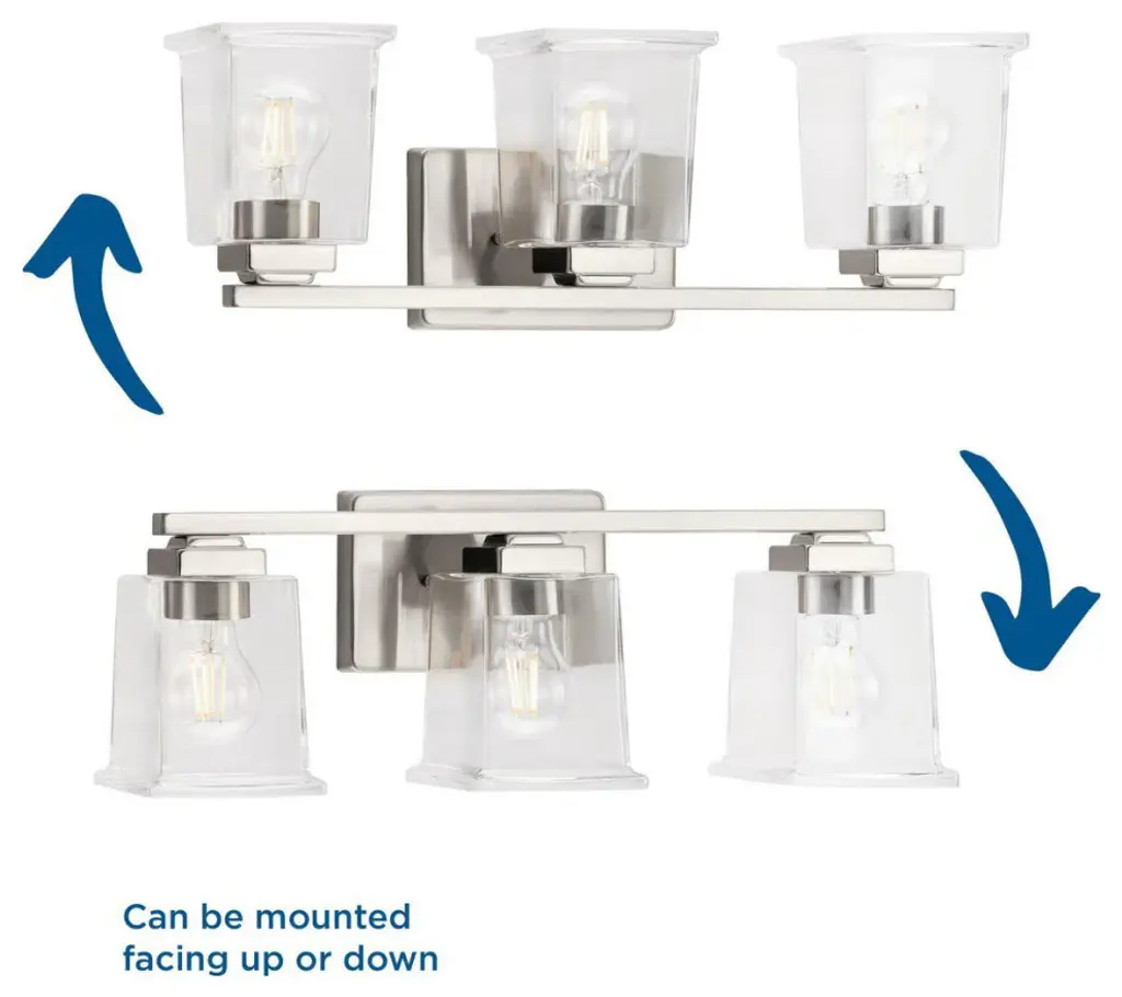 Gilmour Collection 3-Light Brushed Nickel Clear Glass Bath Vanity Light