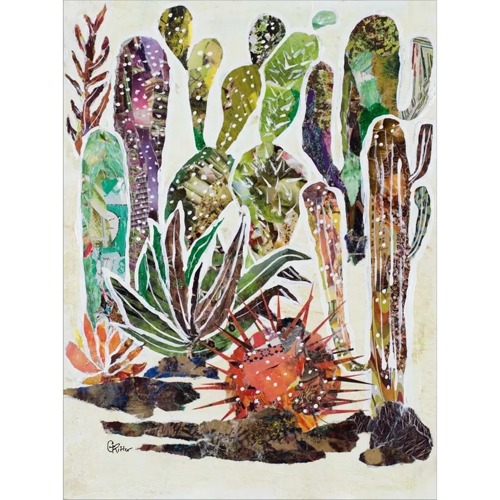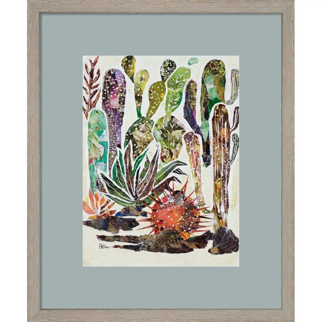 Desert Garden II by Gina Ritter is a high quality piece of framed artwork. The finished size of this piece is 15" x 18". It has a Distressed Aged White Wash frame, Bluestone mat and is finished with high quality Acrylic Plexiglass. 100% Satisfaction Guaranteed.
