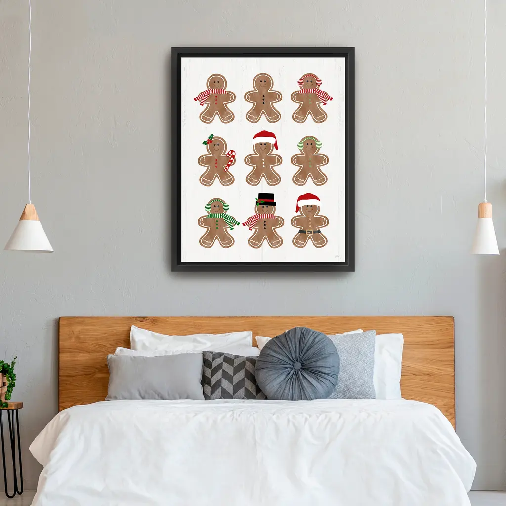 Add a cozy touch to your Christmas decor with this gingerbread-themed canvas artwork that evokes nostalgic joy. Its playful design and rich seasonal colors make it perfect for creating a welcoming holiday atmosphere. Our Gallery Wrap Canvas Prints are proudly assembled with high quality materials in California, USA. Each piece is printed on a thick, archival grade canvas using Giclee technology. It is then hand-stretched by our experienced artisans over solid wood bars, which will not warp over time. The final product is a piece personally crafted for you to confidently display on your wall. Care and Assembly: Ensure that the location of your piece has little to no exposure to heat, sunlight, and moisture. Wipe clean, only if needed. Each piece includes hanging hardware to hang on your wall vertically.