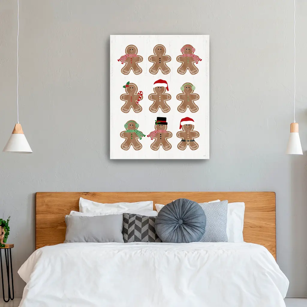 Add a cozy touch to your Christmas decor with this gingerbread-themed canvas artwork that evokes nostalgic joy. Its playful design and rich seasonal colors make it perfect for creating a welcoming holiday atmosphere. Our Gallery Wrap Canvas Prints are proudly assembled with high quality materials in California, USA. Each piece is printed on a thick, archival grade canvas using Giclee technology. It is then hand-stretched by our experienced artisans over solid wood bars, which will not warp over time. The final product is a piece personally crafted for you to confidently display on your wall. Care and Assembly: Ensure that the location of your piece has little to no exposure to heat, sunlight, and moisture. Wipe clean, only if needed. Each piece includes hanging hardware to hang on your wall vertically.