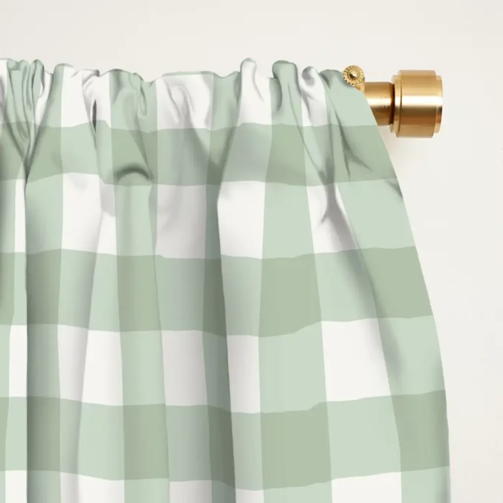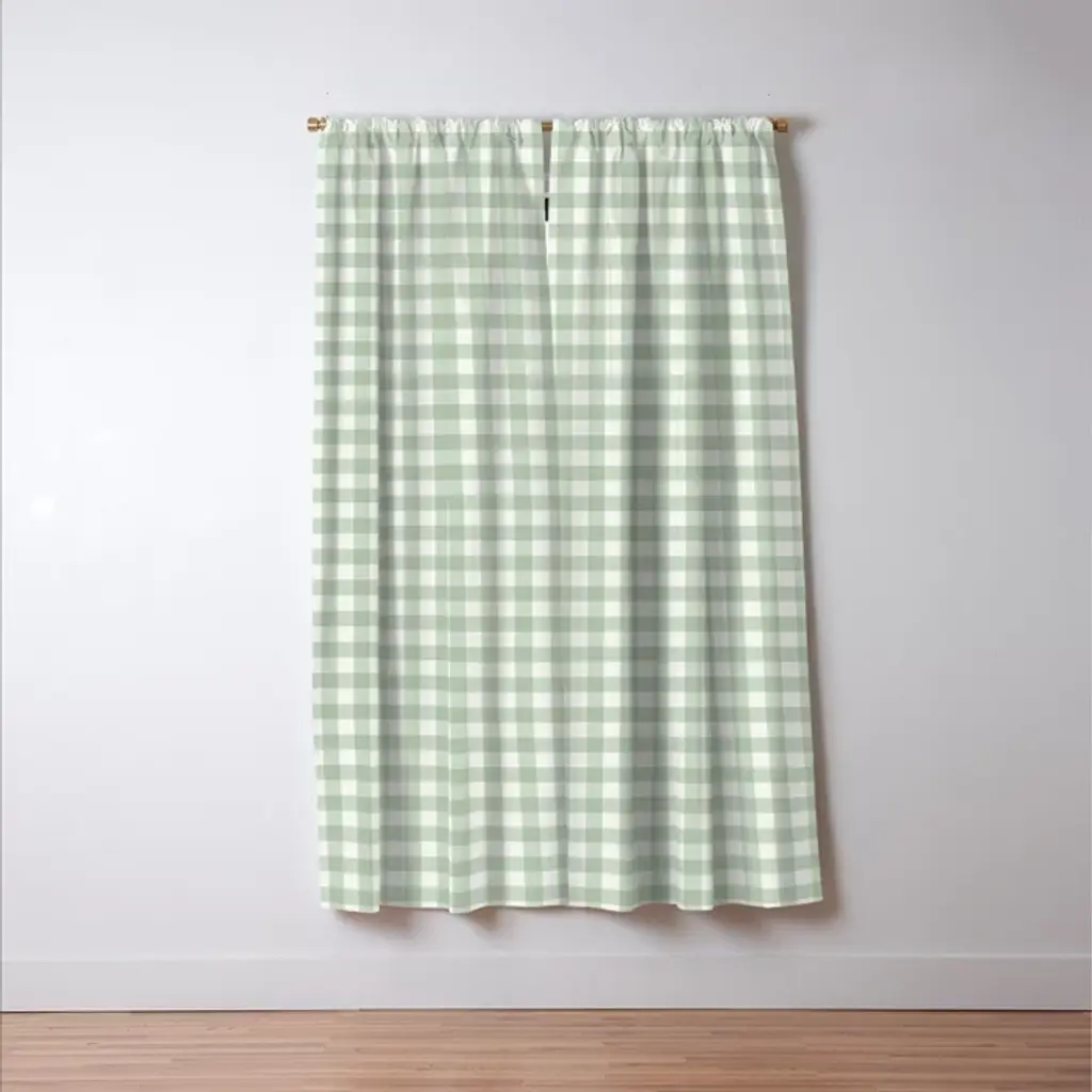 Gingham Plaid Pattern - Sage Green Curtain