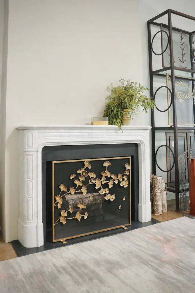 The Ginkgo Fireplace Screen is designed to be seen. This piece combines movement, elegance, and allure to make it the perfect piece to finish off your fireplace decor. Each leaf is formed with individual, hand bent iron. Inspired by ginkgo trees and leaves, the Ginkgo Fireplace Screen will add elegance to your living room or bedroom. The Ginkgo Fireplace Screen is a stunning, one-of-a-kind fireplace screen with unparalleled movement.The Ginkgo Fire Screen can be finished in a variety of colors that can be paired with any color palette or complement existing design elements. Create an elegant and inviting space - the perfect setting for enjoying drinks or socializing with friends. As the fire roars behind the screen, it will protect from stray embers with its mesh backing while also serving as a timeless piece of artwork.Each piece is unique, with slight variations, due to the artisan nature of our hand-applied finishing process. Handmade in the U.S.A., it ships in 6-8 weeks.