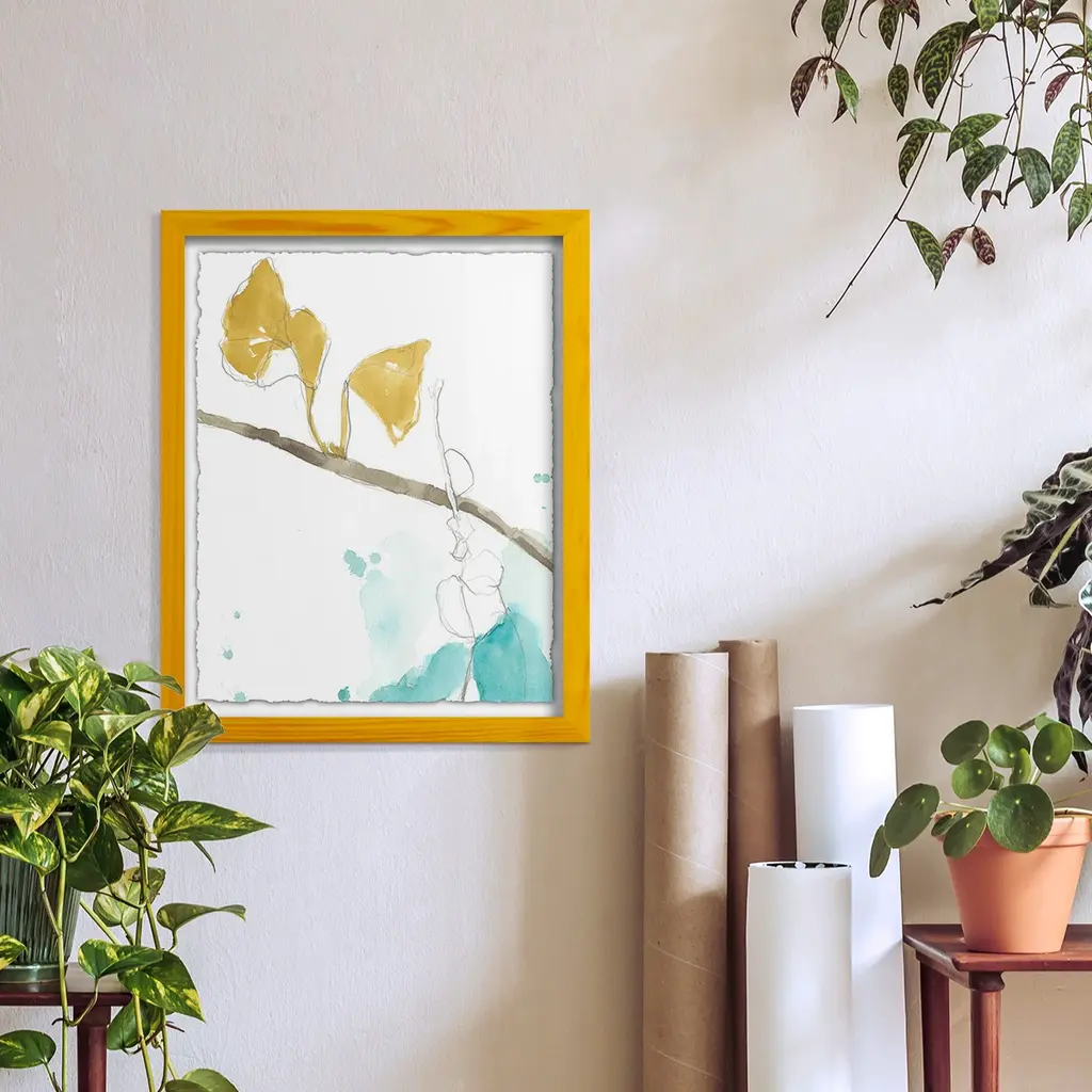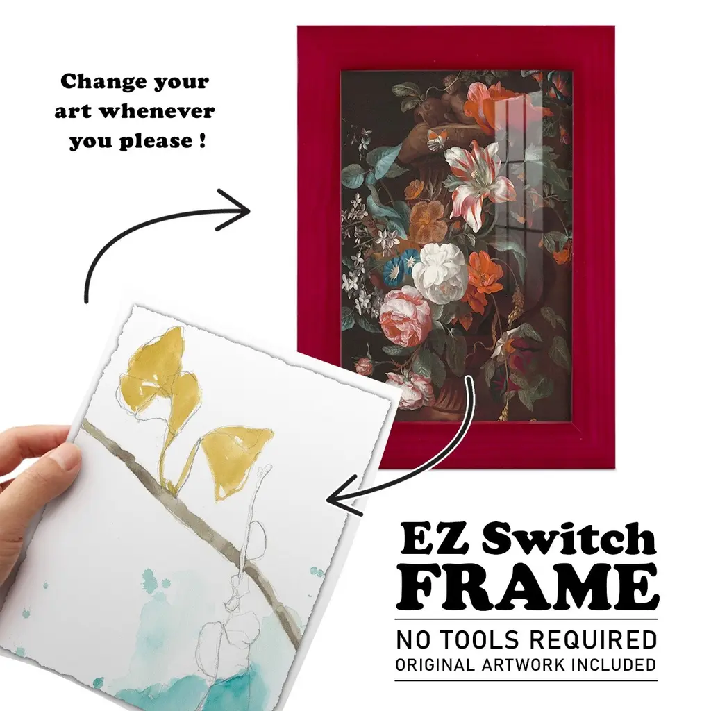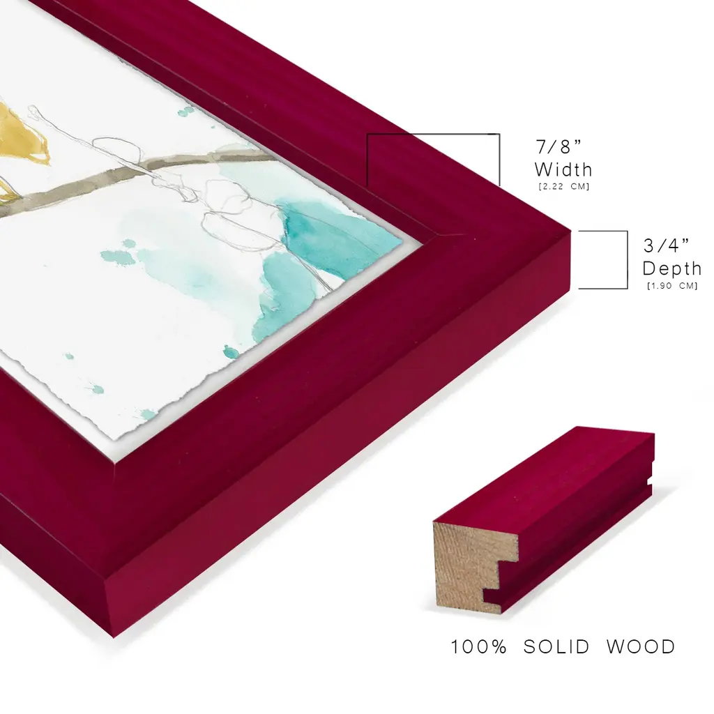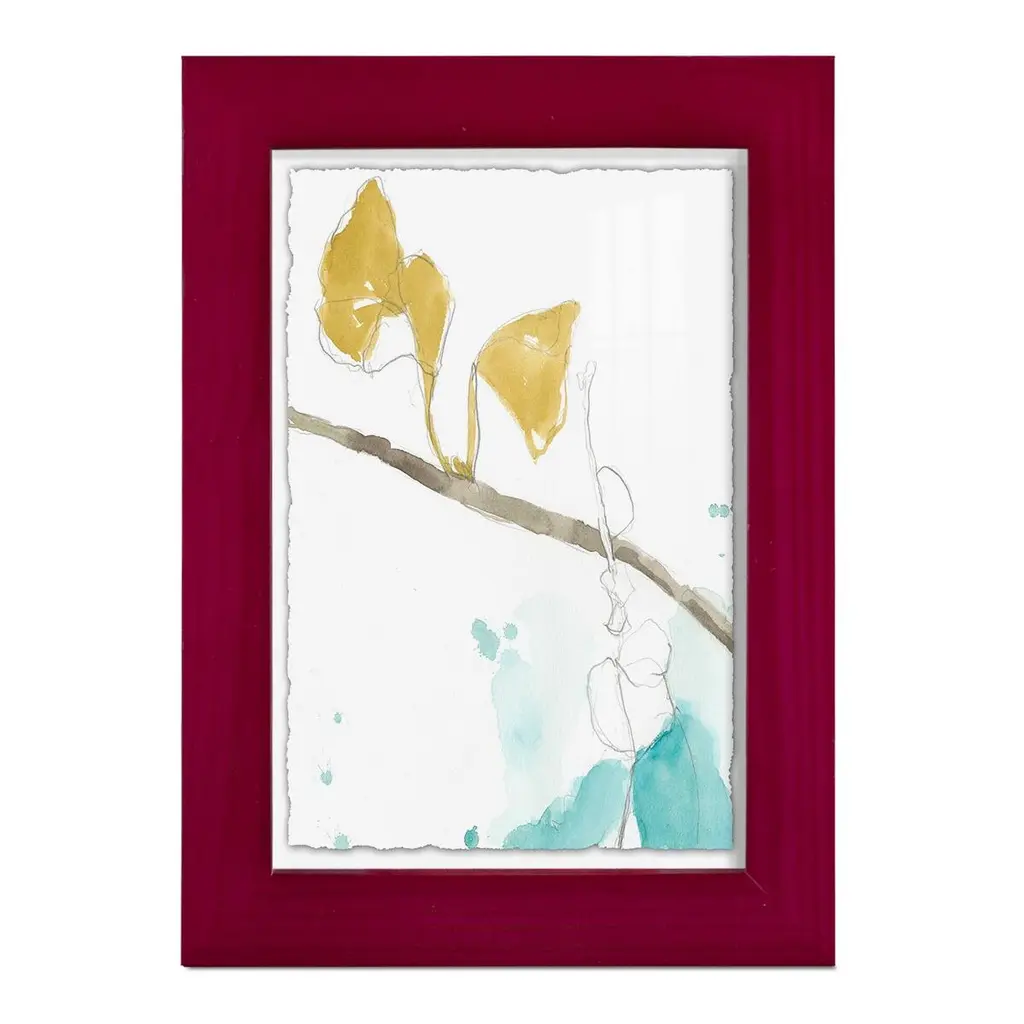 Ginkgo on Dusty Teal II -EZ SWITCH Framed Print w/glass-Cherry Red A delightful, framed print. Featuring a solid wood frame with real wood glass. This premium print is giclee quality. In addition, every frame features a removable back and table top stand. This allows you to change your art in the future or to just stand the art on a table for a new look. We are sure you'll enjoy our new series of EZ SWITCH Framed Art. Solid Wood Frame Real Glass Removable / Replaceable Art Built in Tabletop Stand Sizes range from 4x6 up to 12x15 - buy just one or pair them up as sets as you see fit.