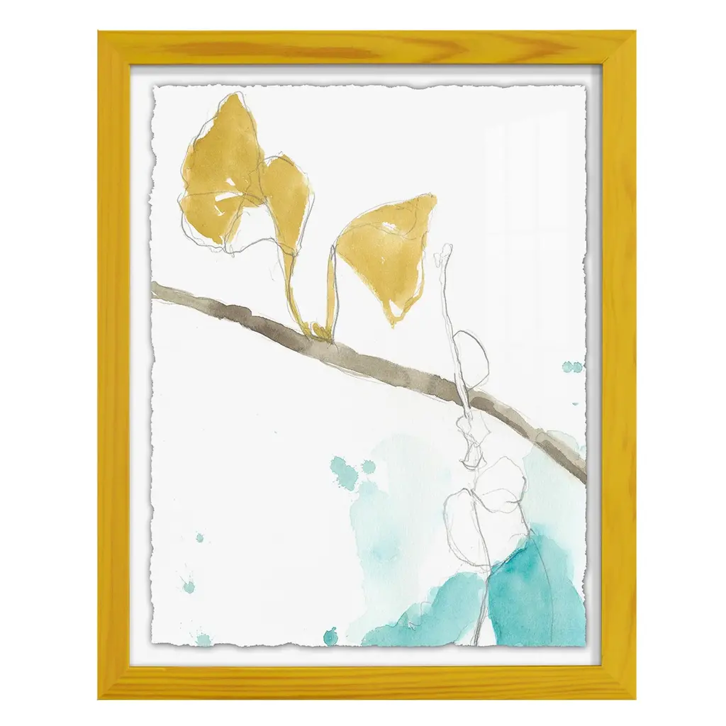 Ginkgo On Dusty Teal Ii -Framed Print W/glass-Cherry Red - 12x15 - Maple