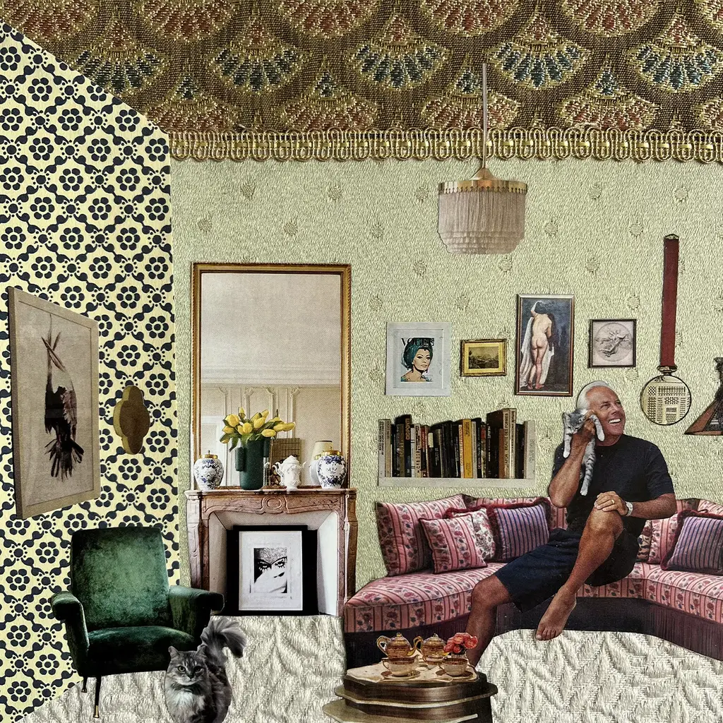 This captivating collage reimagines the legendary Italian fashion designer Giorgio Armani, the man who redefined elegance, in a stunning display of upcycled artistry. Each meticulously chosen scrap of fabric, paper, and newspaper becomes a tribute to his sartorial mastery. Part of a unique collection where legendary figures are reborn using everyday discards, this Italian-made masterpiece is a one-of-a-kind treasure. The frame is included.