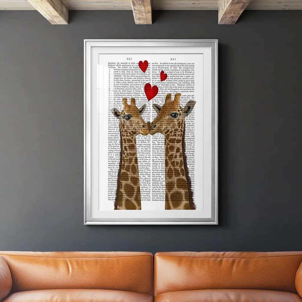 Giraffe Love Premium Framed Print - Ready To Hang - 30.5x42.5 - Silver