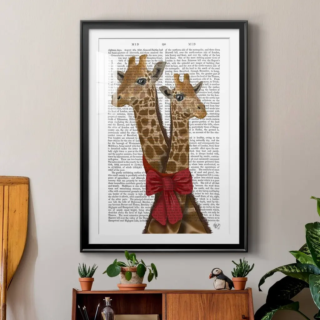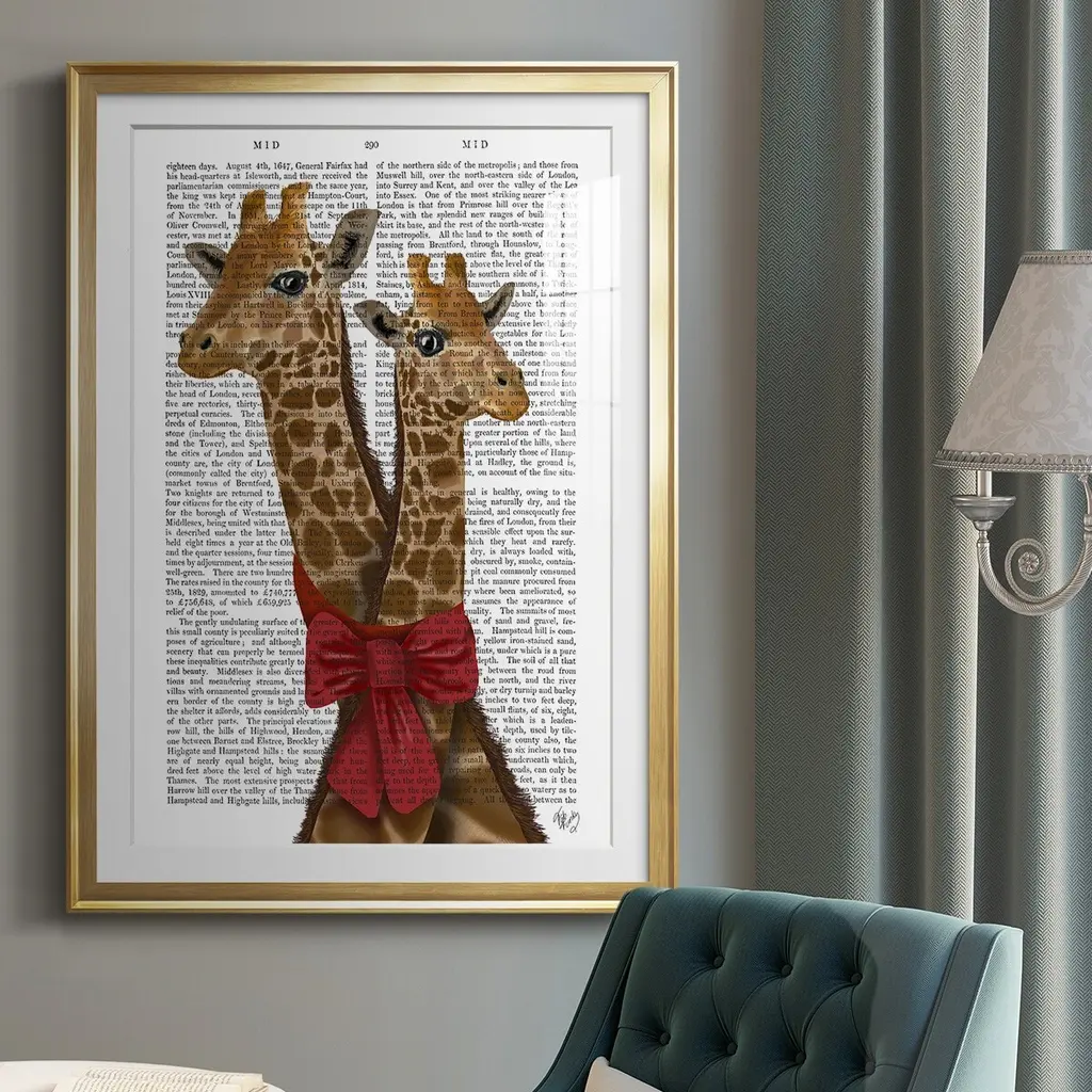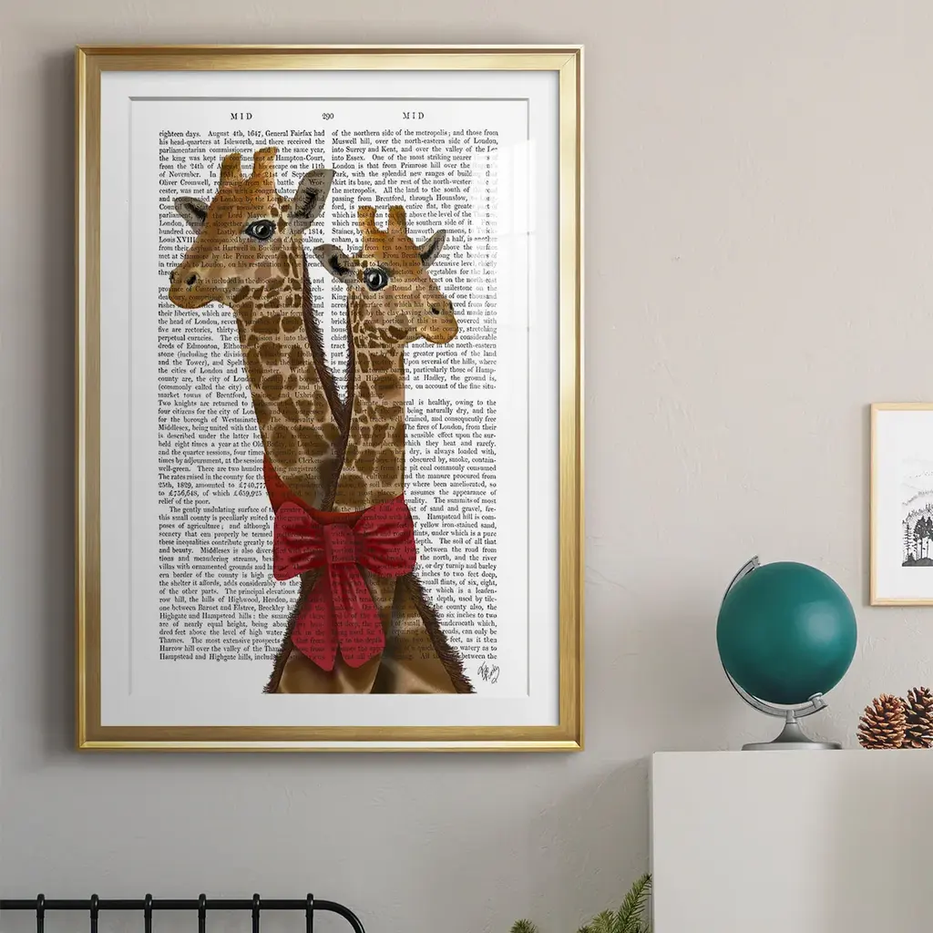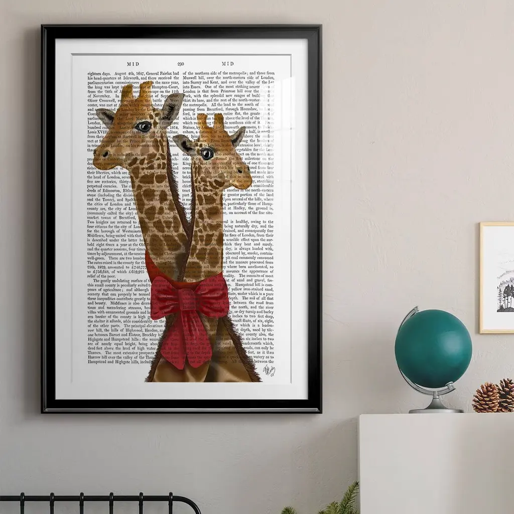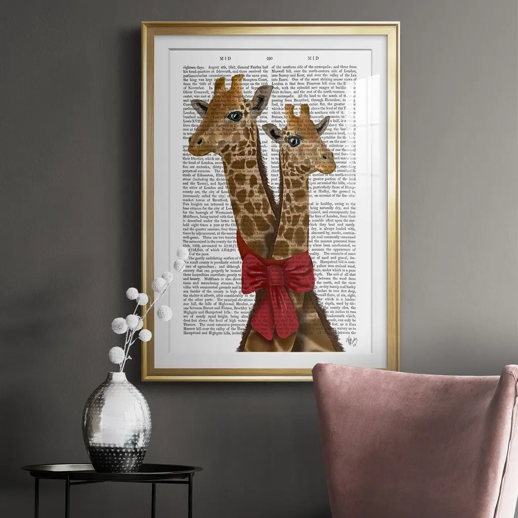 Giraffes And Bow Premium Framed Print - Ready To Hang - 30.5x42.5 - Black