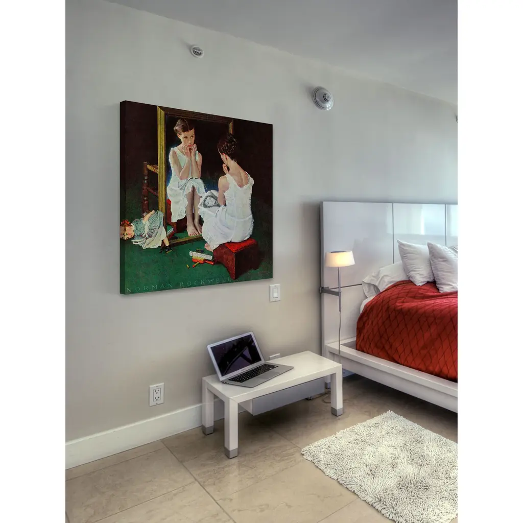 "Girl At The Mirror" Painting Print On Canvas By Norman Rockwell