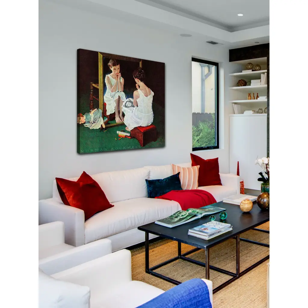 "Girl at the Mirror" Painting Print on Canvas by Norman Rockwell features vivid tones and supple artistry. Printed on canvas, this 18 inch wide by 18 inch tall piece will be an exceptional addition to any room.Fine art canvas print from the Marmont Hill Art CollectiveProfessionally hand stretchedGallery wrapped in sustainable, non-warping woodArrives ready to hangMade in the USAIncludes a certificate of authenticityNorman Rockwell was one of America's leading artists. He chose to tell the story of the American dream, the detail of a simpler time, painted with warmth and humor. He tapped into the nostalgia of the American people with paintings that were often idyllic and expressed enthusiasm for the ordinary.
