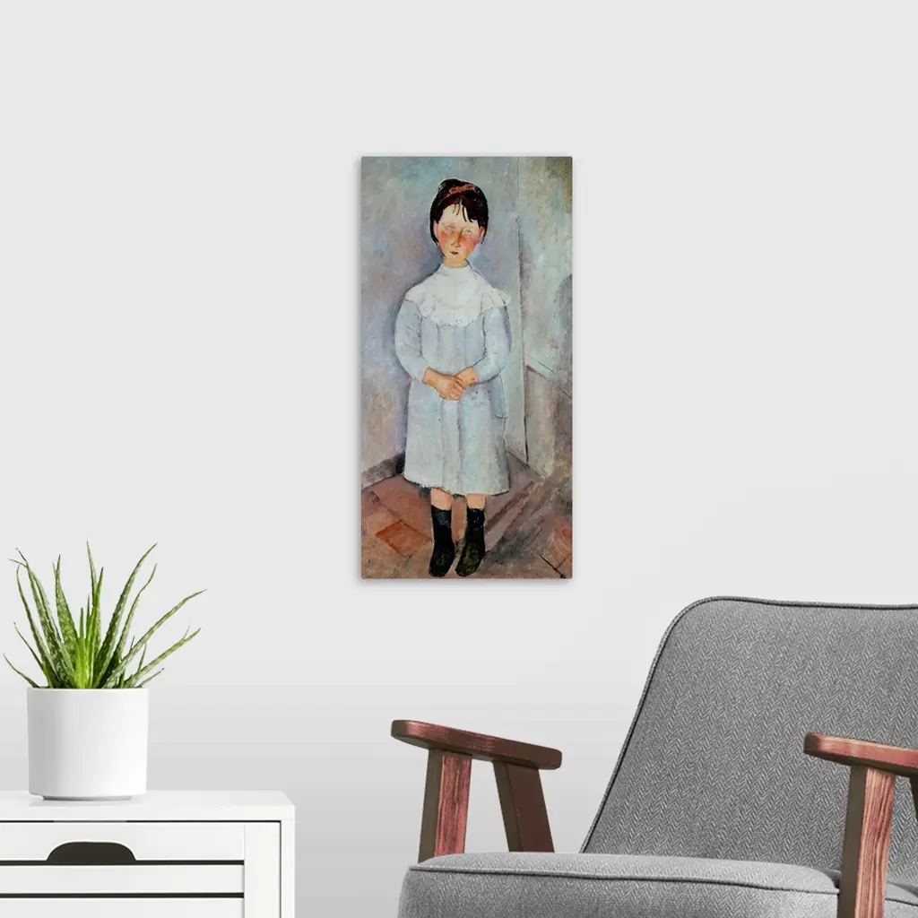 Girl in blue. Painting by Amedeo Modigliani (1884-1920), 1918. 1,16 x 0,73 m. Private collection