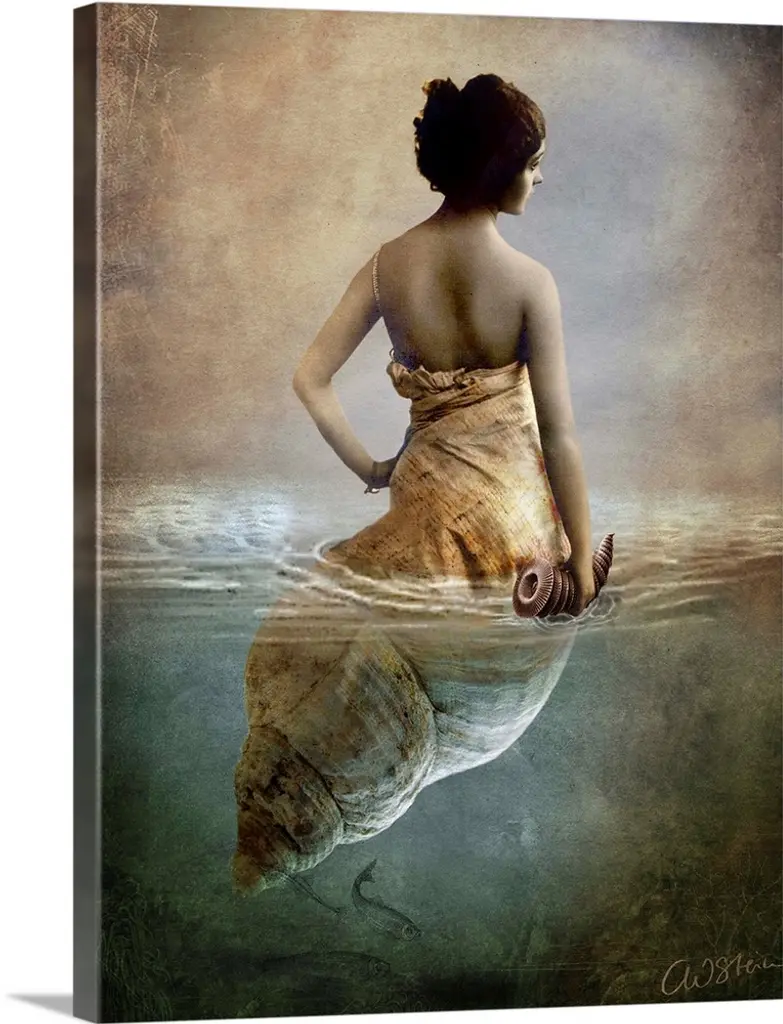 An ethereal, dreamlike artwork by Andrew Martin depicting a female figure as she seems to be suspended below the surface of the water. Watery turquoise shades provide a pleasing contrast with the model's auburn hair and ribbons of fabric trail around her. In the background, we see what appears to be the remains of a grand room and piano in the bottom left corner. Printed onto smooth plexiglass this mesmeric piece is part of our ongoing collaboration with Cobra Art.Production time: 6-8 Weeks