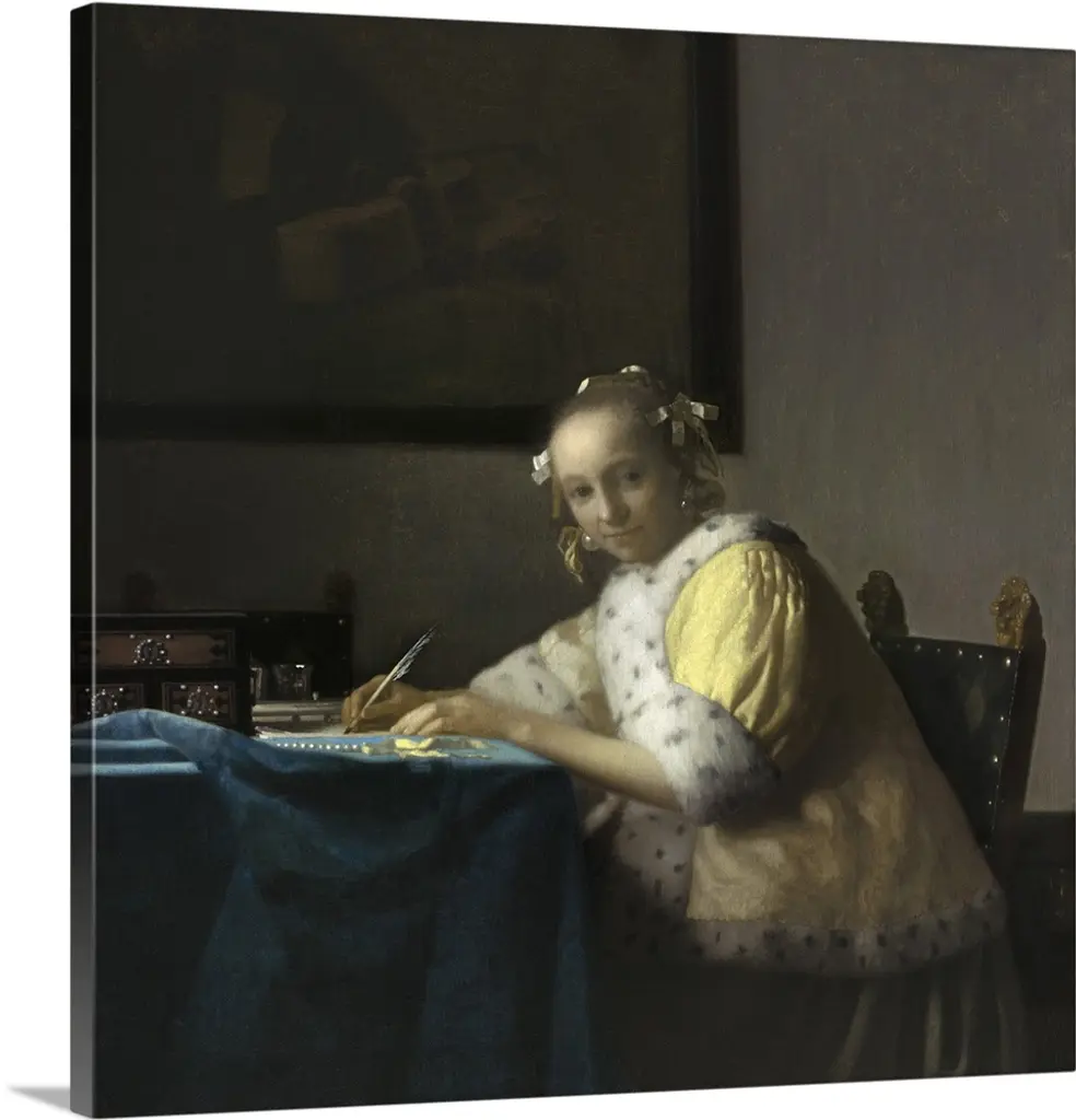 Girl with a Flute, by Johannes Vermeer, c. 1665-70, Dutch painting, oil on canvas. She wears a hat that creates a shadow over her face, as she makes her eye contact with the viewer