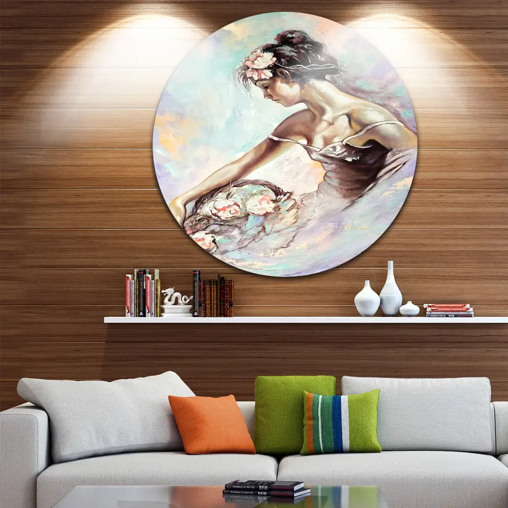 Bring Contemporary Abstraction to your home with this large Circle Metal wall art. This Girl with Flower Bouquet Metal Artwork makes it the focal point of any room or office. - White Gloss Coating ensures colors are extra vibrant with light reflection.- Aluminum grade Sheet Metal with 1 inch mounting frame on the back giving the illusion that the artwork is floating on the wall..- Mounting Brackets are included along with instructions.- High Quality Digital images are created directly into a glossy aluminum panel producing a stunning and captivating print into the glossy finish of the metal.- Water, Fire and Scratch resistant HD Aluminum panels.- Looks better than any photo paper and guaranteed to last at least 20 years- Easy to clean with a microfiber cloth. Colors are far superior to regular Canvas Art. - Easy to Hang