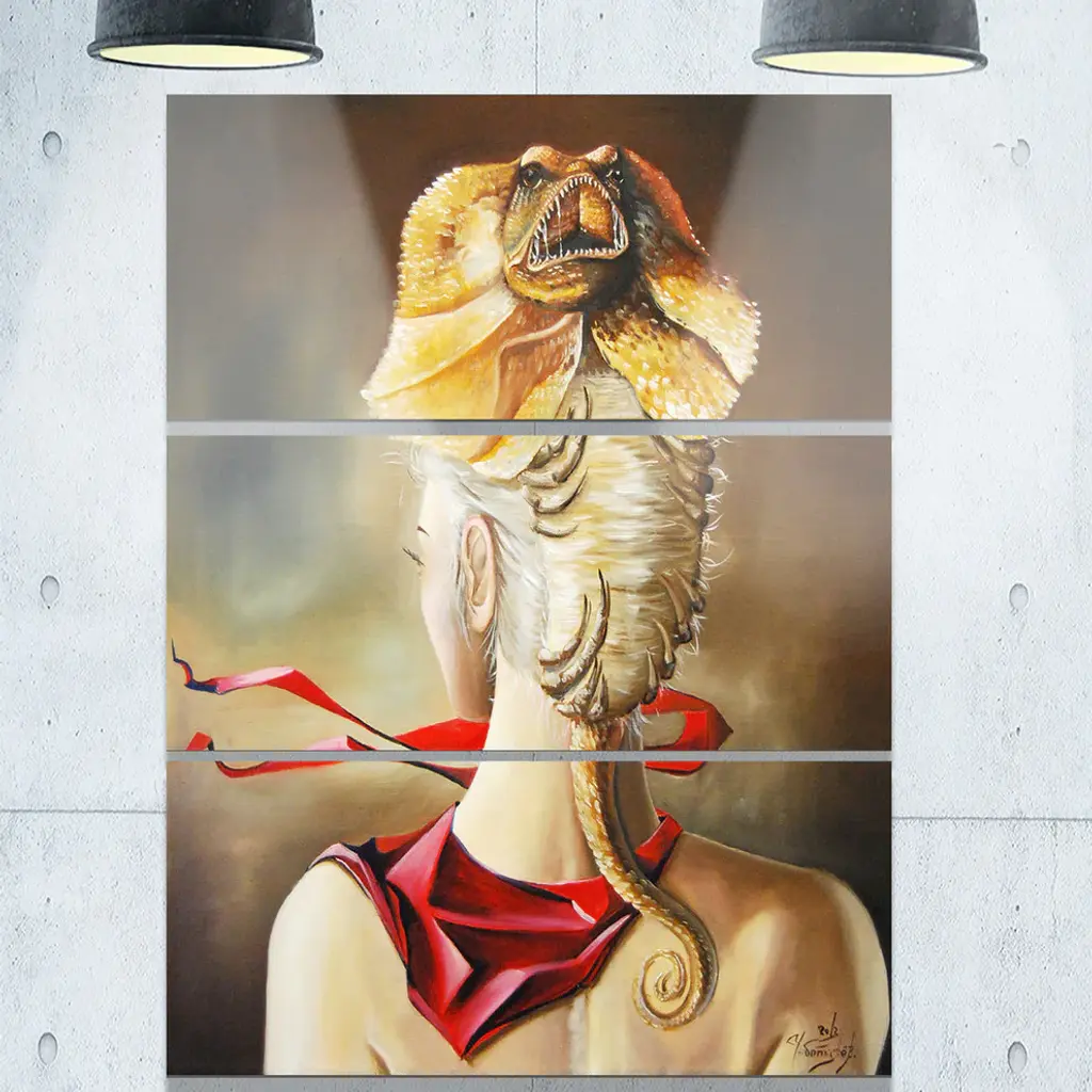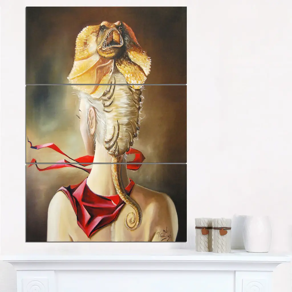 "Girl With Surreal Hat" Digital Metal Wall Art, 3 Panels, 28"x36"