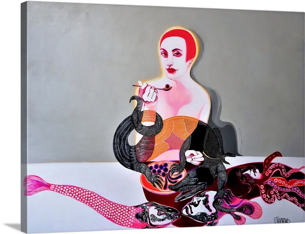 Bring contemporary abstraction to your home with this large 28W x 36H Metal Wall Art. This Girl with Surreal Hat Metal Artwork makes it the focal point of any room or office. - White gloss coating ensures colors are extra vibrant with light reflection.- Aluminum grade sheet metal with 1-inch mounting frame on the back giving the illusion that the artwork is floating on the wall.- Mounting brackets are included along with instructions.- High quality digital images are created directly into a glossy aluminum panel producing a stunning and captivating print into the glossy finish of the metal.- Water, fire and scratch resistant HD aluminum panels.- Looks better than any photo paper and guaranteed to last at least 20 years- Easy to clean with a microfiber cloth. Colors are far superior to regular canvas art. - Easy to hang