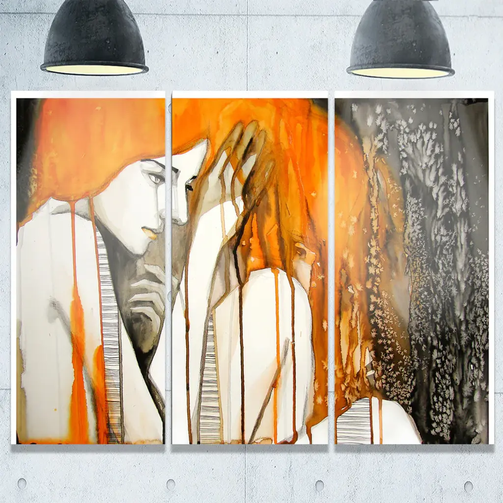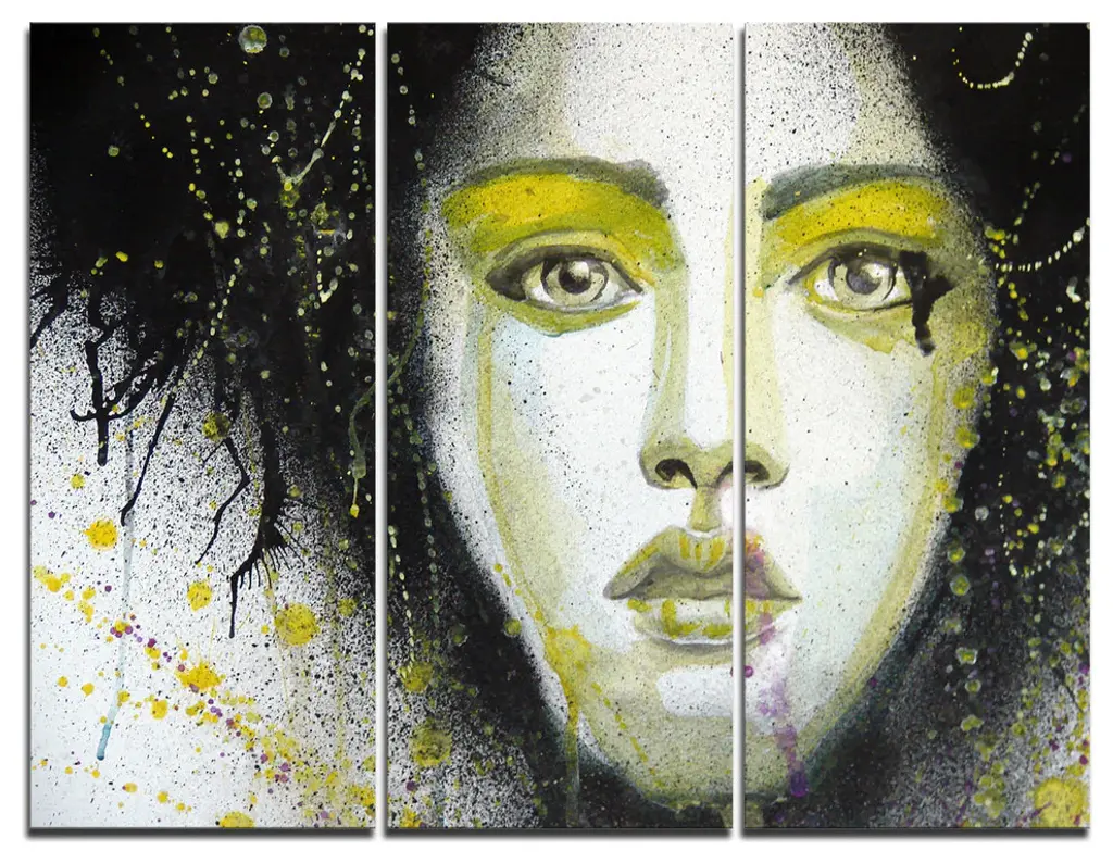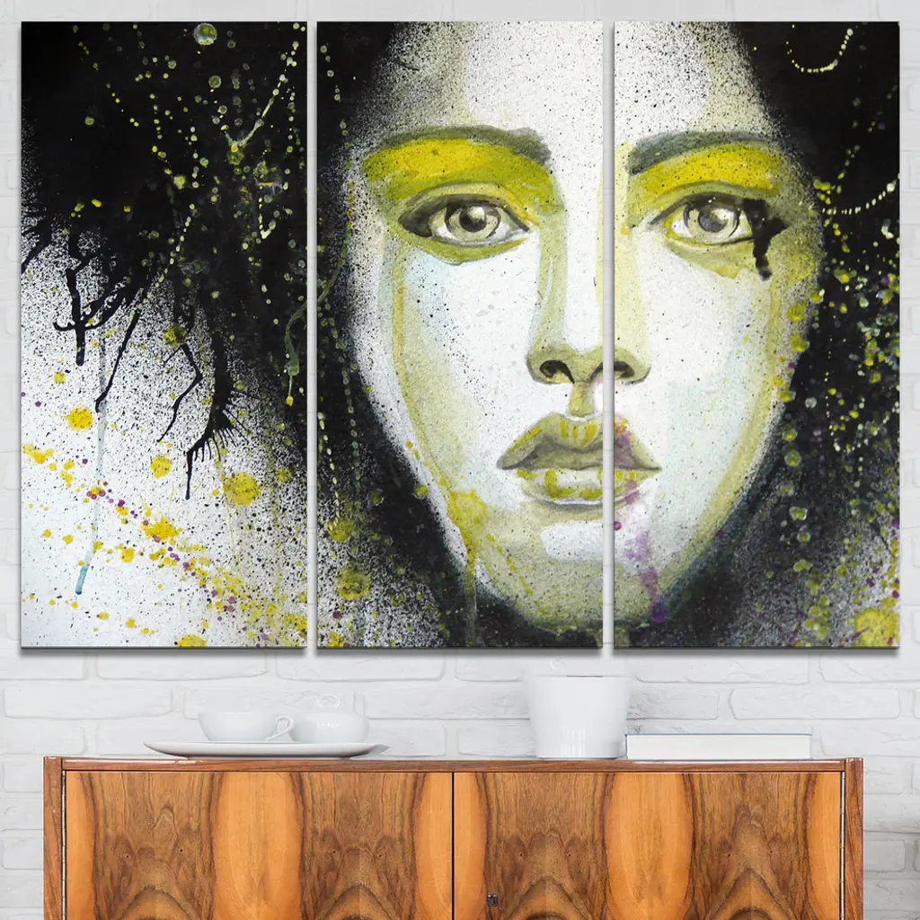 "Girl With Yellow Eye Line" Digital Metal Wall Art, 3 Panels, 36"x28"