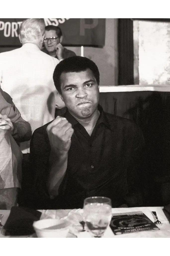 27th May 1963: American Heavyweight boxer Cassius Clay (later Muhammad Ali) lying on his hotel bed in London. He holds up five fingers in a prediction of how many rounds it will take him to knock out British boxer Henry Cooper. Hand-selected from the celebrated Getty Images archive, Jonathan's covetable edit captures moments of timeless glamour and classic joie de vivre within the animal, celebrity, fashion and jet set worlds. Each image is printed from scans of the original negative then mounted on aluminum and faced with museum quality Plexiglas. Please allow 3 to 5 weeks for delivery.