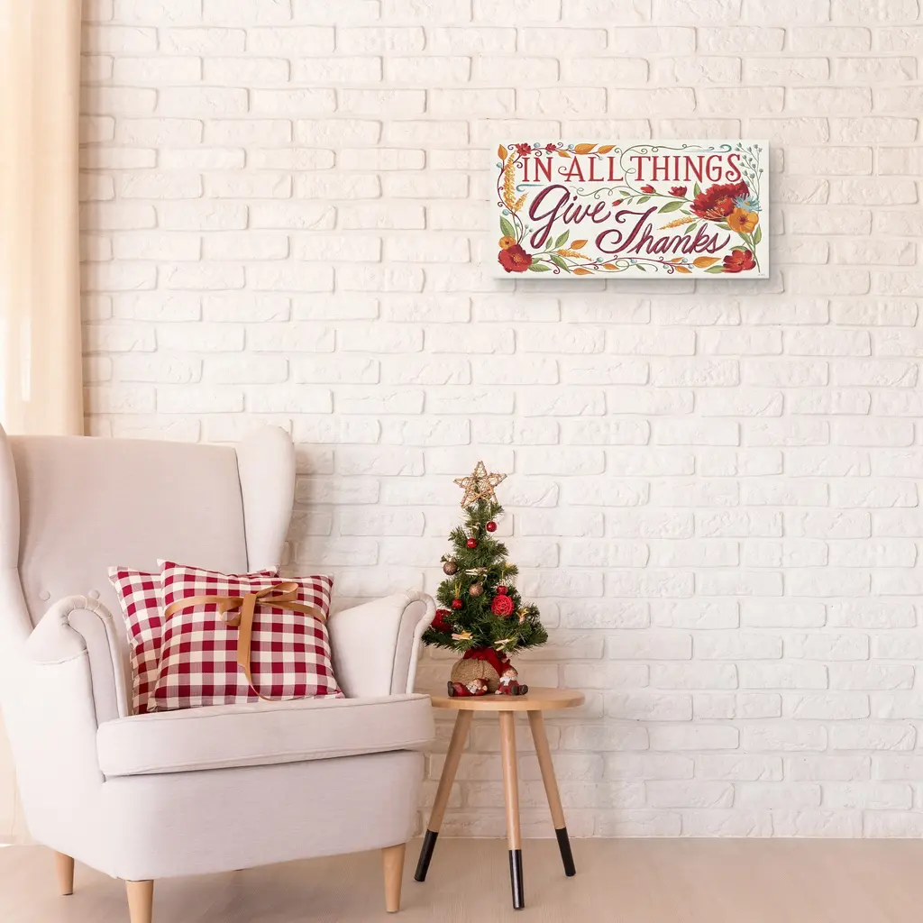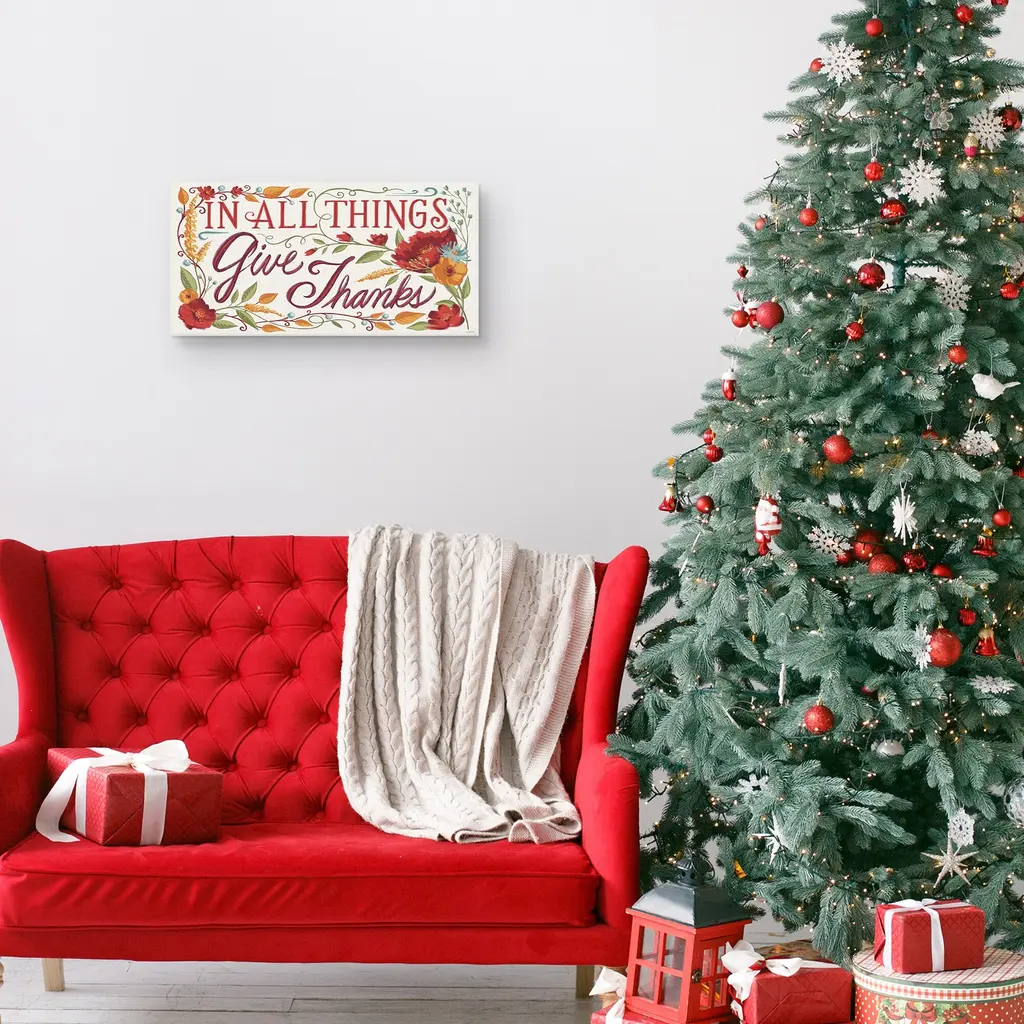 There's no better time than the fall to look back and remember all the things we're grateful for this year. This gorgeous floral-wreathed hand-lettered canvas print reminds us "in all things" to "give thanks" and is a staple piece of autumn and Thanksgiving decor.