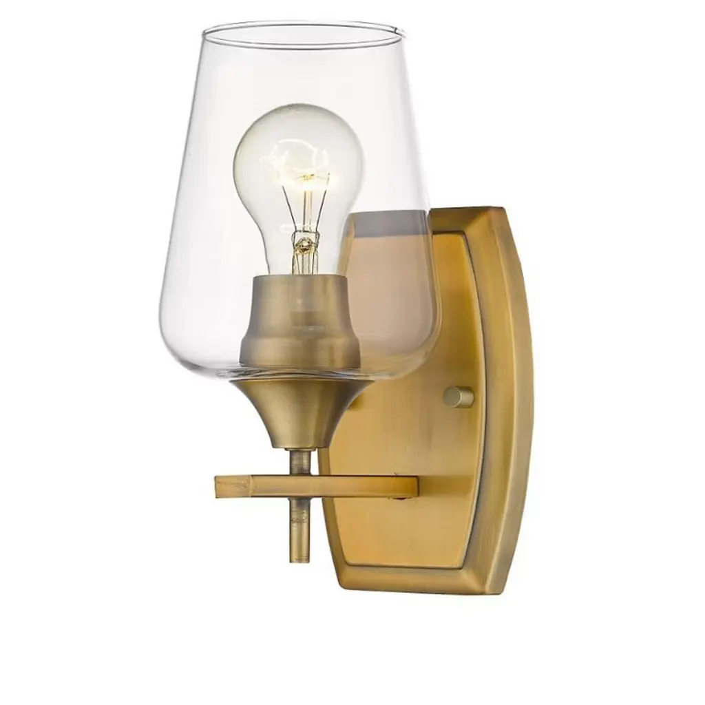 Breathe new life into your bathroom with the Shelby Collection of lighting. This transitional family adds a fresh, simple, clean look with its Brass and Black combination finish.