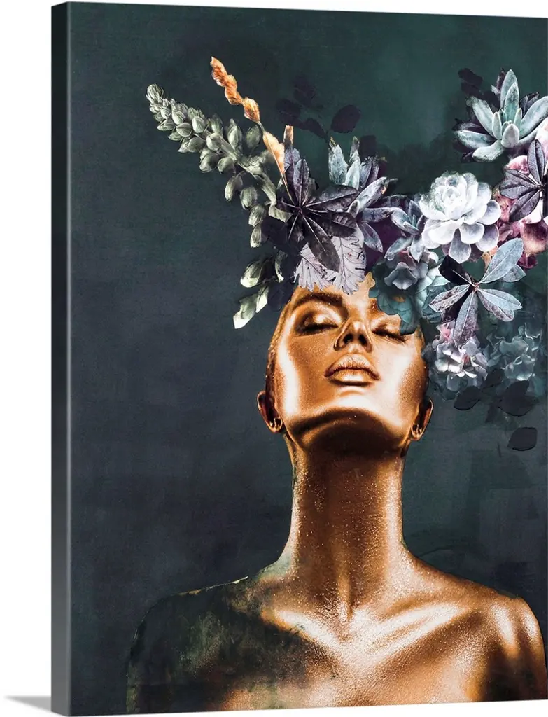 Glamour Bronze Female Portrait Succulent Plants,1pc, Each 11 X 14