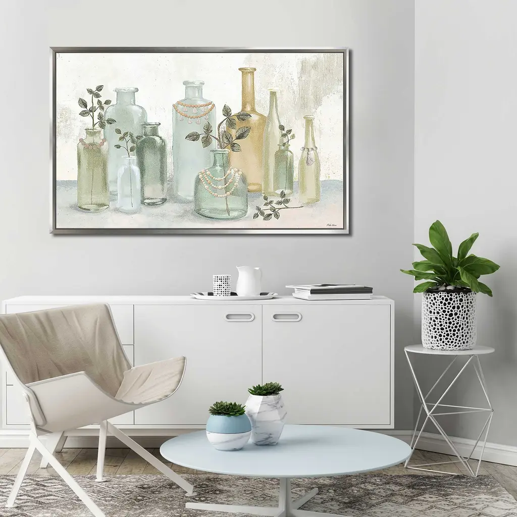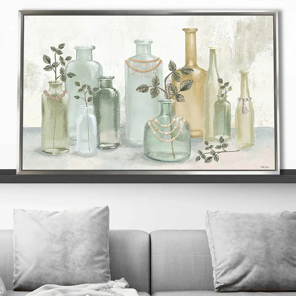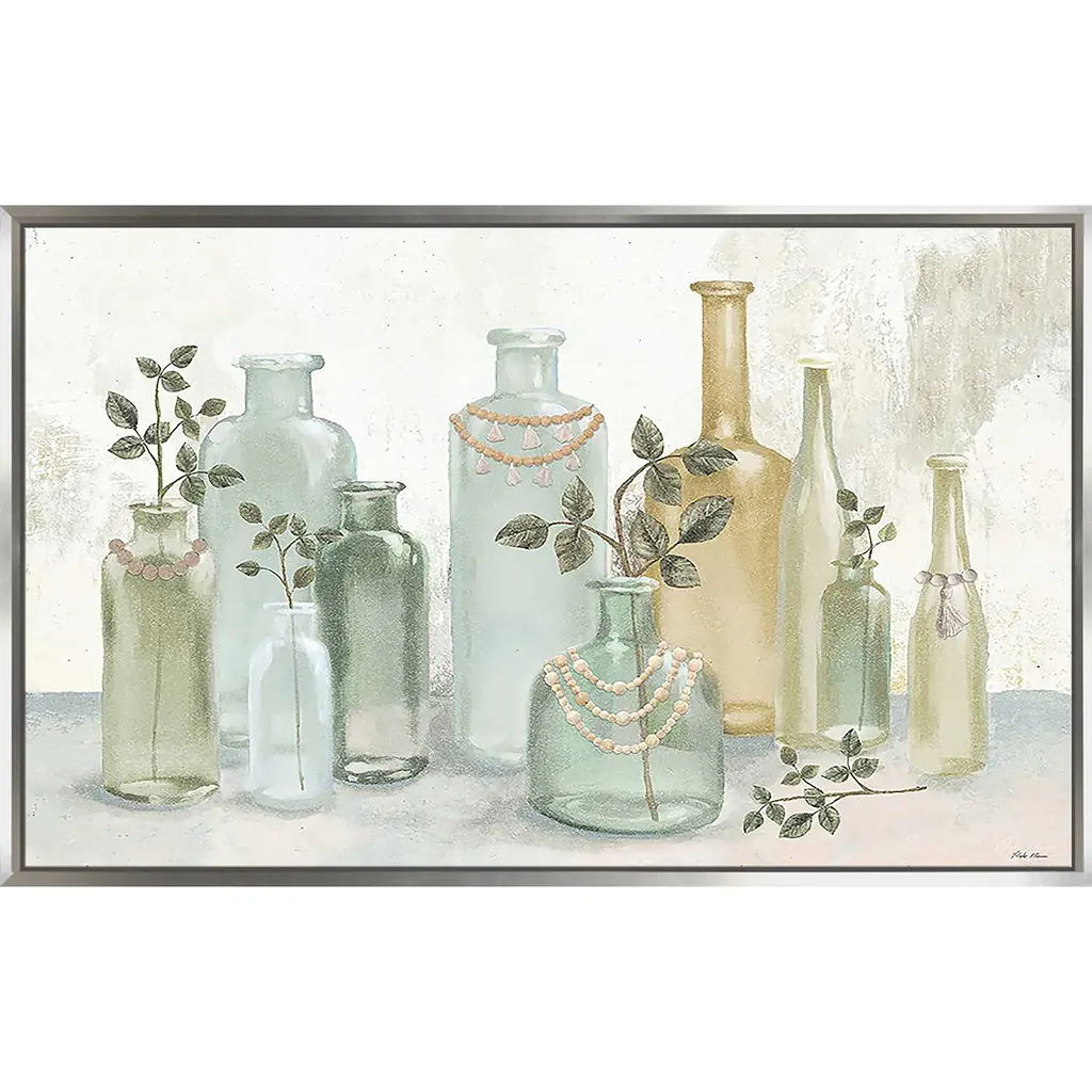 "Glass Bottles With Tassels" Print On Floating Canvas - 31.5 X 51.5