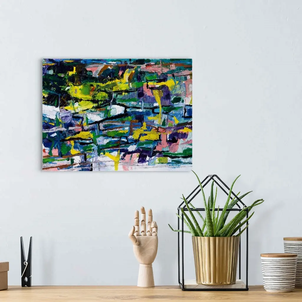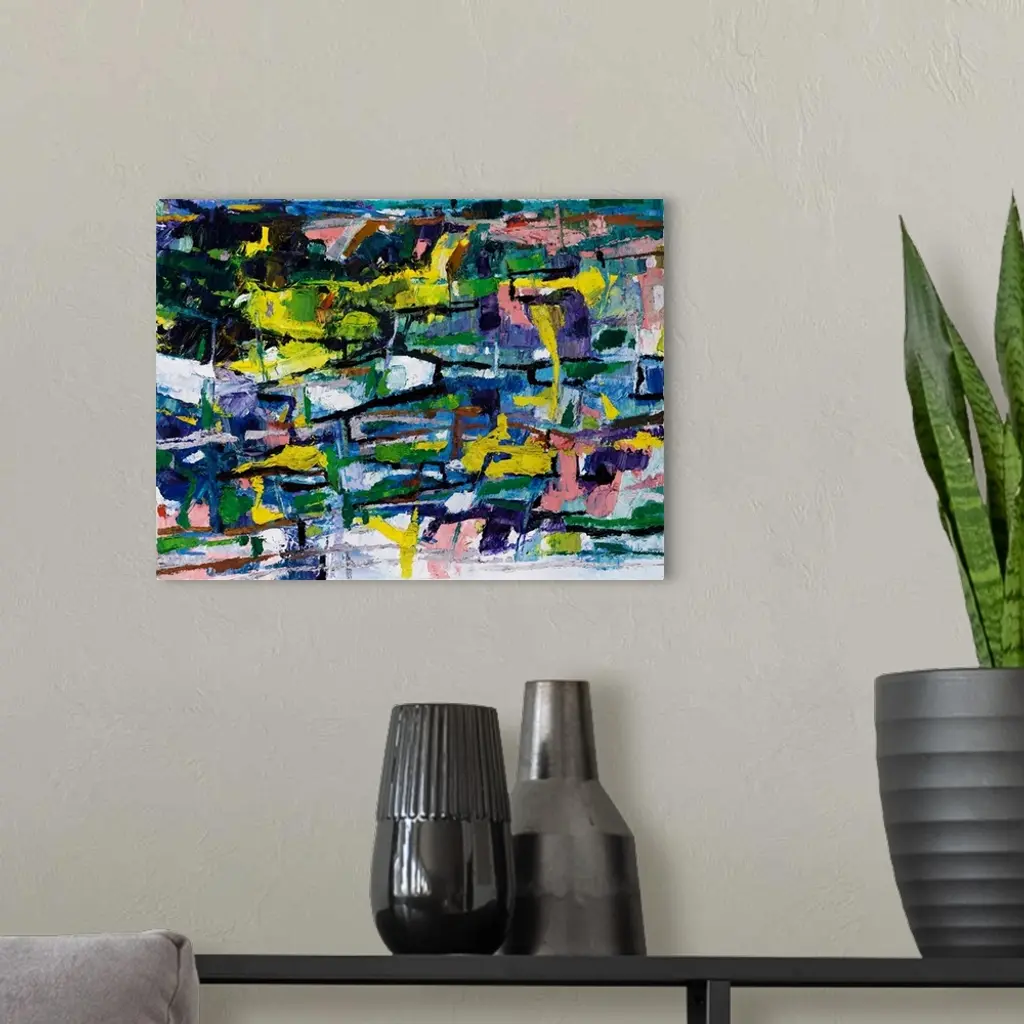 An abstract painting of a play of tonal variations and forms coupled voids.