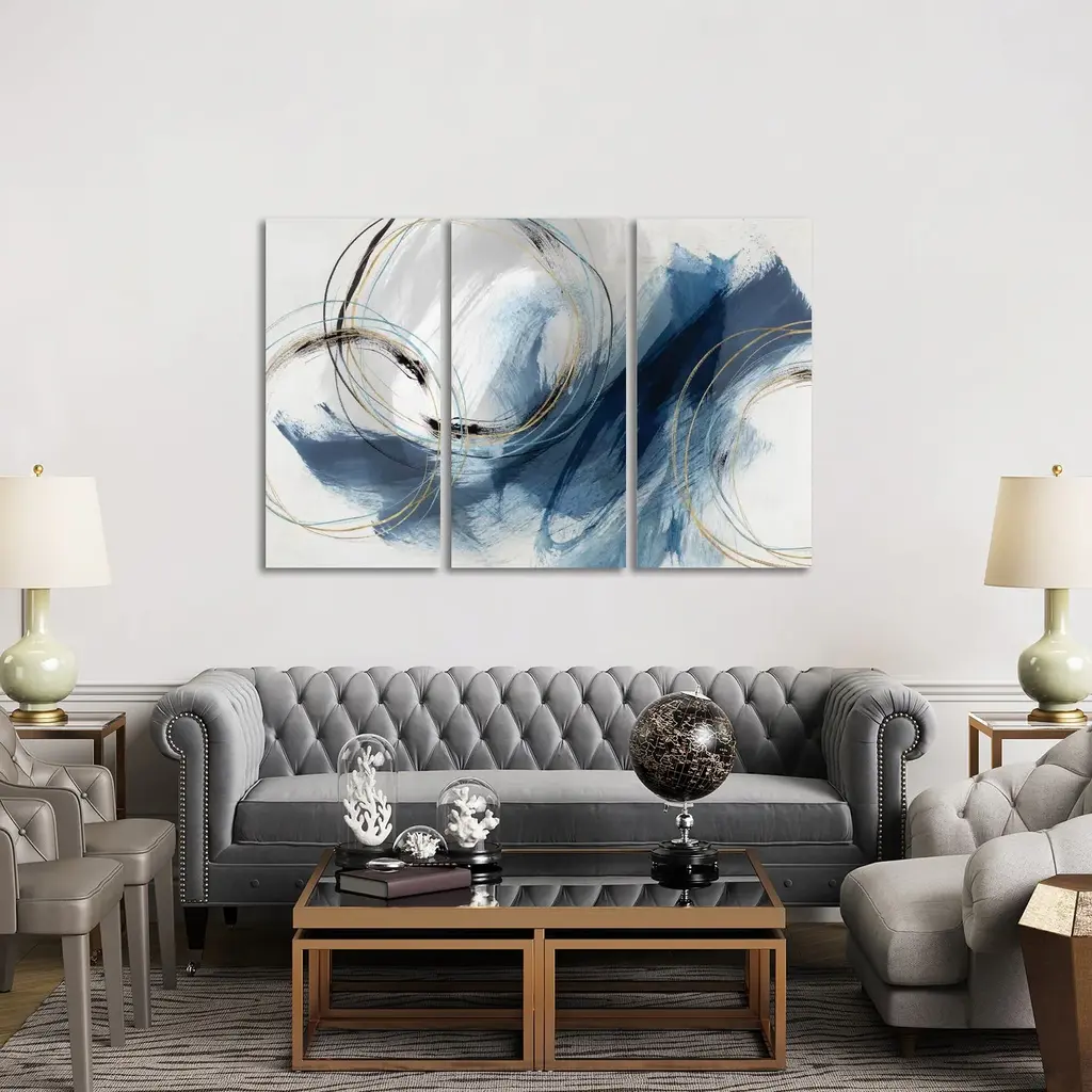 "Glittering Light Blue Pattern" Digital Wall Art, 3 Panels, 36"x28"