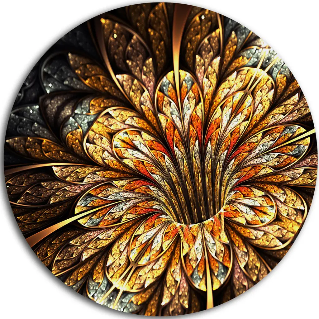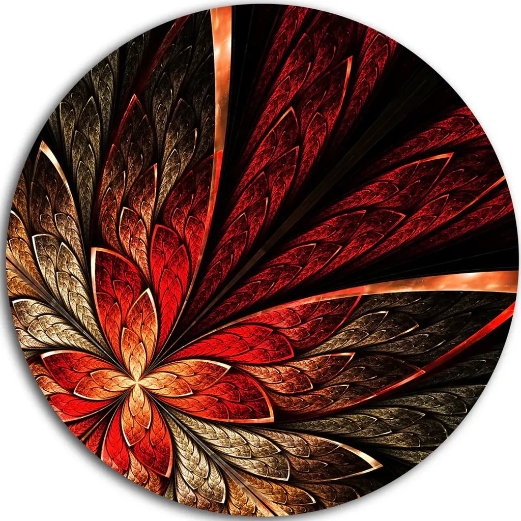 Glittering Light Red Fractal Flower, Floral Disc Metal Wall Art, 36"