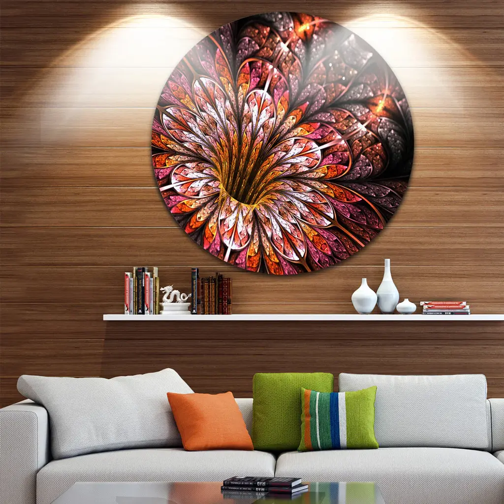 Bring Contemporary Abstraction to your home with this large Circle Metal wall art. This Glittering Light Red Fractal Flower Metal Artwork makes it the focal point of any room or office. - White Gloss Coating ensures colors are extra vibrant with light reflection.- Aluminum grade Sheet Metal with 1 inch mounting frame on the back giving the illusion that the artwork is floating on the wall..- Mounting Brackets are included along with instructions.- High Quality Digital images are created directly into a glossy aluminum panel producing a stunning and captivating print into the glossy finish of the metal.- Water, Fire and Scratch resistant HD Aluminum panels.- Looks better than any photo paper and guaranteed to last at least 20 years- Easy to clean with a microfiber cloth. Colors are far superior to regular Canvas Art. - Easy to Hang
