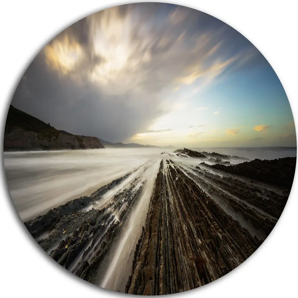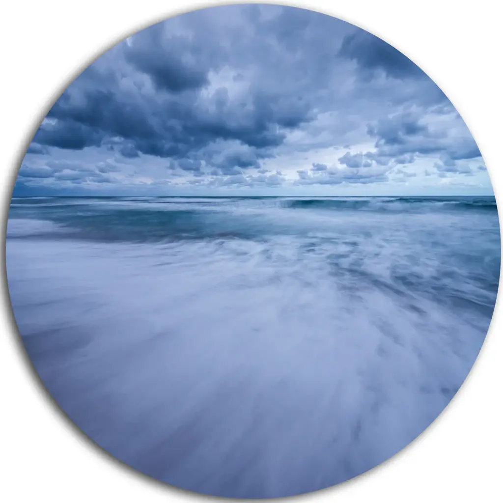 Bring Contemporary Abstraction to your home with this large Circle Metal wall art. This Gloomy Bluish Atlantic Beach Portugal Metal Artwork makes it the focal point of any room or office. - White Gloss Coating ensures colors are extra vibrant with light reflection.- Aluminum grade Sheet Metal with 1 inch mounting frame on the back giving the illusion that the artwork is floating on the wall..- Mounting Brackets are included along with instructions.- High Quality Digital images are created directly into a glossy aluminum panel producing a stunning and captivating print into the glossy finish of the metal.- Water, Fire and Scratch resistant HD Aluminum panels.- Looks better than any photo paper and guaranteed to last at least 20 years- Easy to clean with a microfiber cloth. Colors are far superior to regular Canvas Art. - Easy to Hang