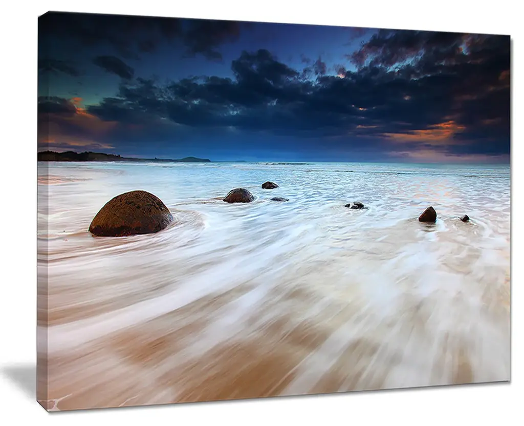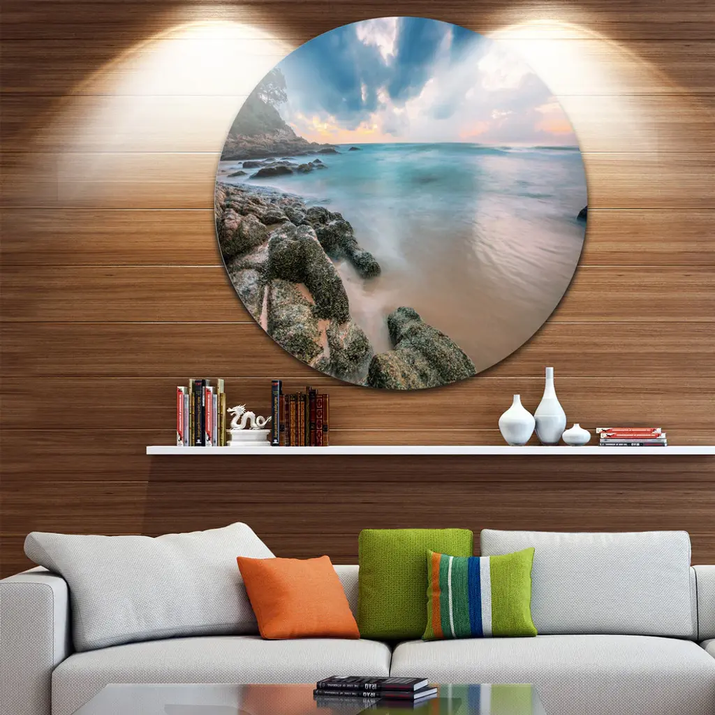 Gloomy Tropical Sunset Beach, Seascape Round Metal Wall Art, 23"