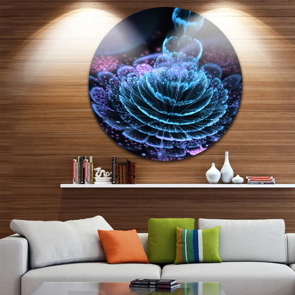 Glossy Blue Purple Fractal Flower, Floral Round Metal Wall Art, 23"